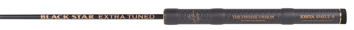 XESTAが誇るライトゲームロッド、ブラックスターシリーズの最高峰に君臨するモデルにのみ与えられる称号「EXTRA TUNED」。ブランクス、ガイドシステム全てに拘りを詰め込みXESTA史上最高峰モデルだ。製法、マテリアルを徹底的に見直し、的確かつ合理的にアジャストするように作られており、もはや異常とも言える極限のシチュエーションでもアングラーへの伝達性能を保持しライトリグを意のままに操ることができる。この異次元とも言える操作性こそがライトゲームの新たな新境地を切り開く。EXTRA TUNEDとはそうしたコンセプトの上に成り立った一つの作品なのである。