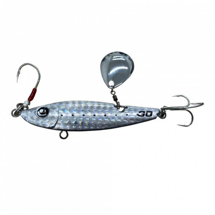 三面体ボディによるフラッシングとブレードの波動でアピールし、水平スローフォールでバイトを誘発します。