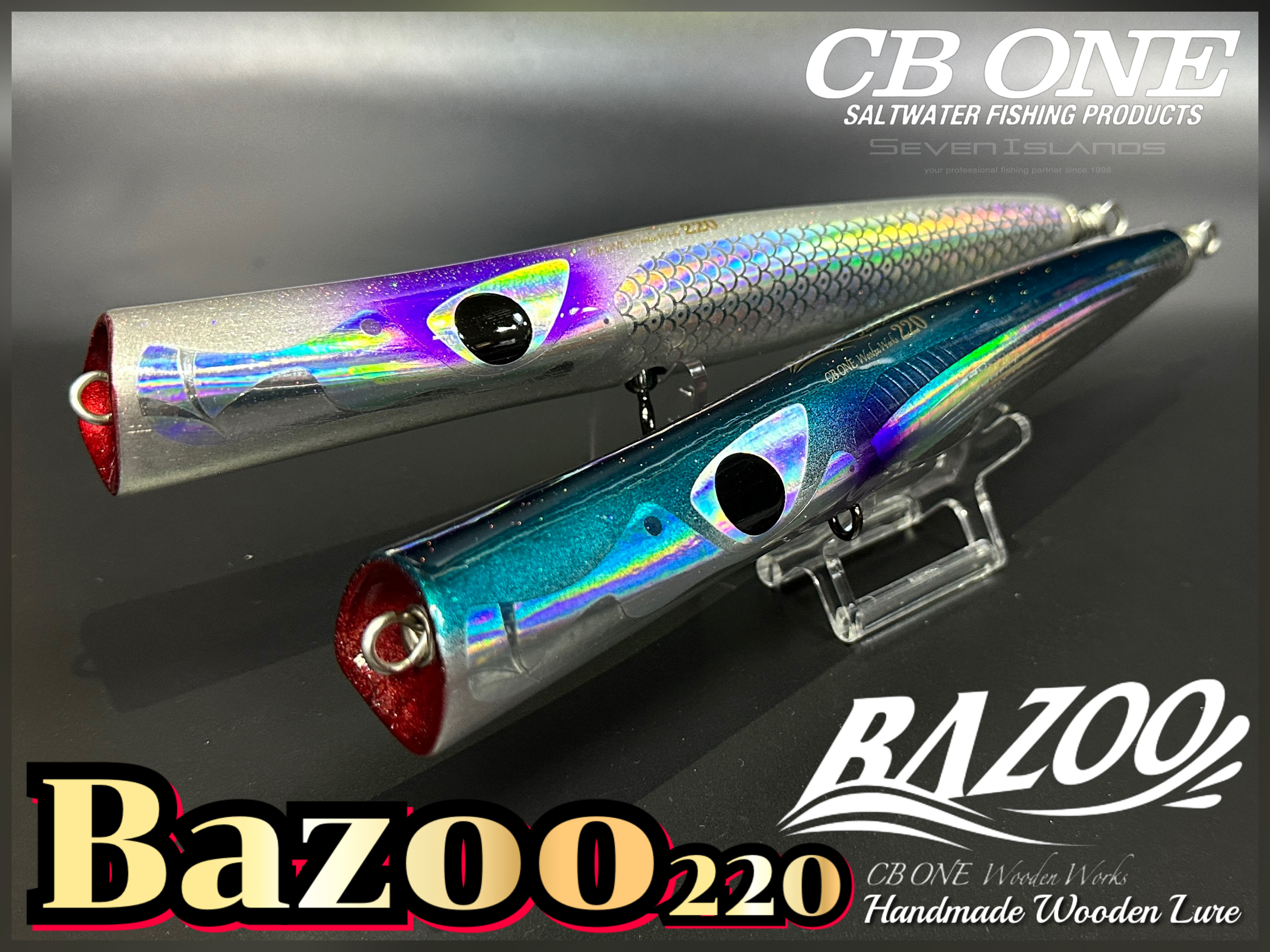大量の泡を纏いながら大きく水を噛み、重みのあるポップサウンドでターゲットに強くアピールを行うポッピングポッパー、バズー。空気抵抗を軽減する円柱のフォルムがシービーワンウッドプラグ随一の飛距離を叩き出し、今までは手に負えないさらに遠くのナブラまでもが射程圏内へ。独特のカップ形状は泡量と水絡みを高め、ラフな水面下においても1アクション目から確実に泳ぎを決めやすい。誘い出しの派手めの連続ポッピングと、ナブラ撃ちのショートポッピング&ステイが大得意。