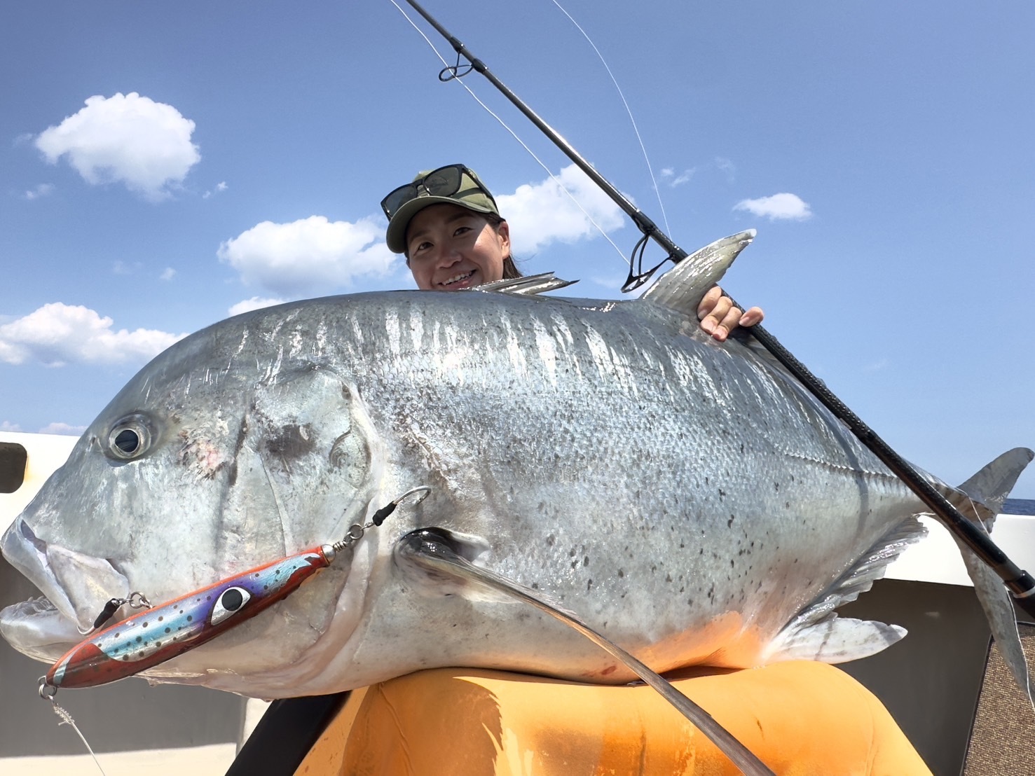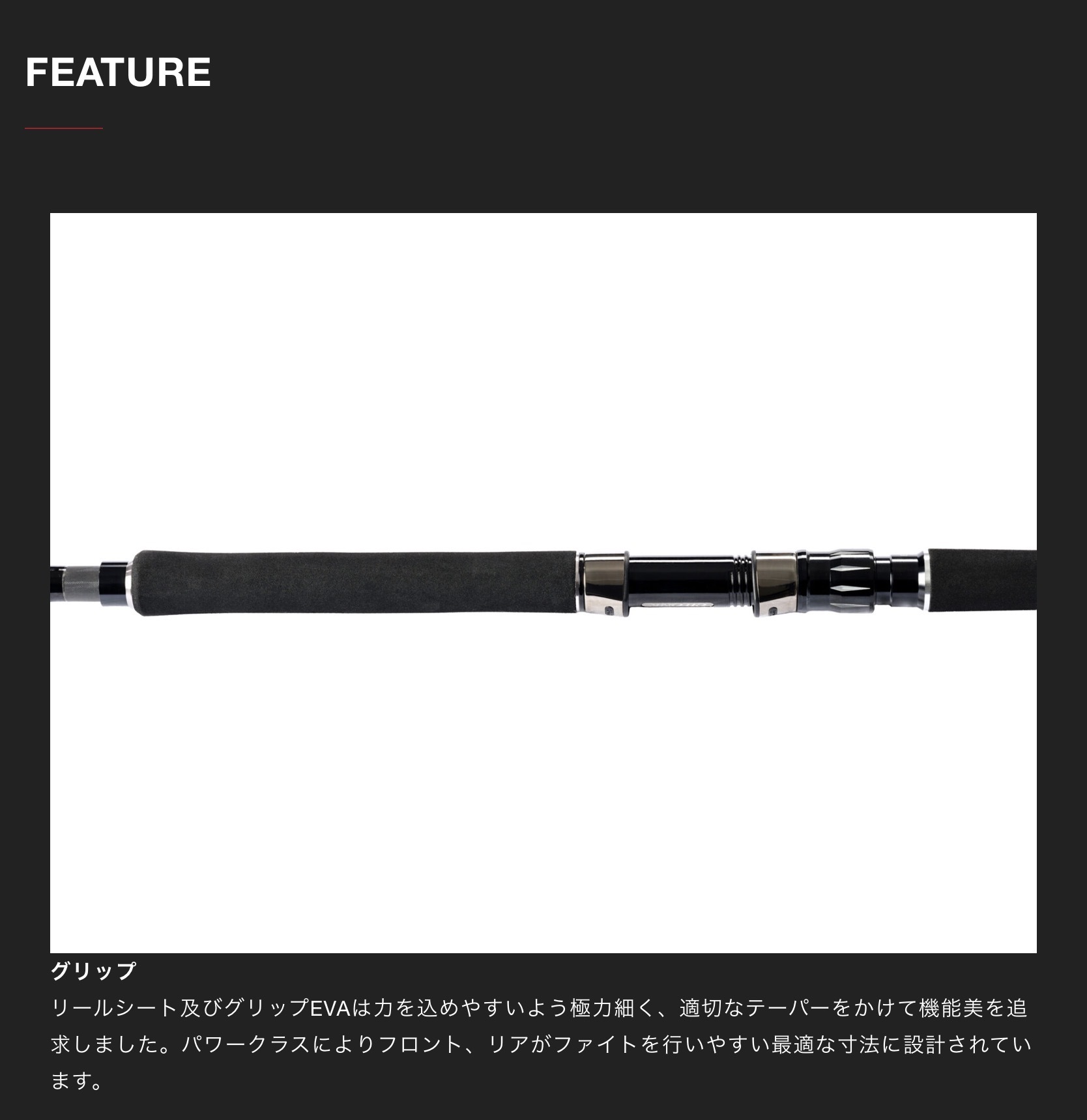 アンフィニティはヒラマサやブリ、マグロ類やGTなど、高負荷ドラグで大型の魚に挑むためのパワーと耐久性を重視したキャスティングロッドです。ティップからベリーには十分なパワーを持たせ、竿先からグリップエンドまでロッド全体を使い反発するパワーロスの極めて少ないアクションの設計です。キャスト時のしなり戻る反発力でルアーが飛んでいく感覚や、立てたロッドを保持することで魚がグイグイと浮くリフティングパワーを体感でき、明らかな飛距離の向上とファイトタイムの短縮を実際に多くの魚を掛けて確認しました。アクションはロッド全体のパワーを引き出しやすく少ない力で曲げ込められるように調整し、キャストやルアー操作においての体力負担がとても少なくなりました。柔軟に曲がり鋭く戻る、相反する要素を高次元で満たした設計です。