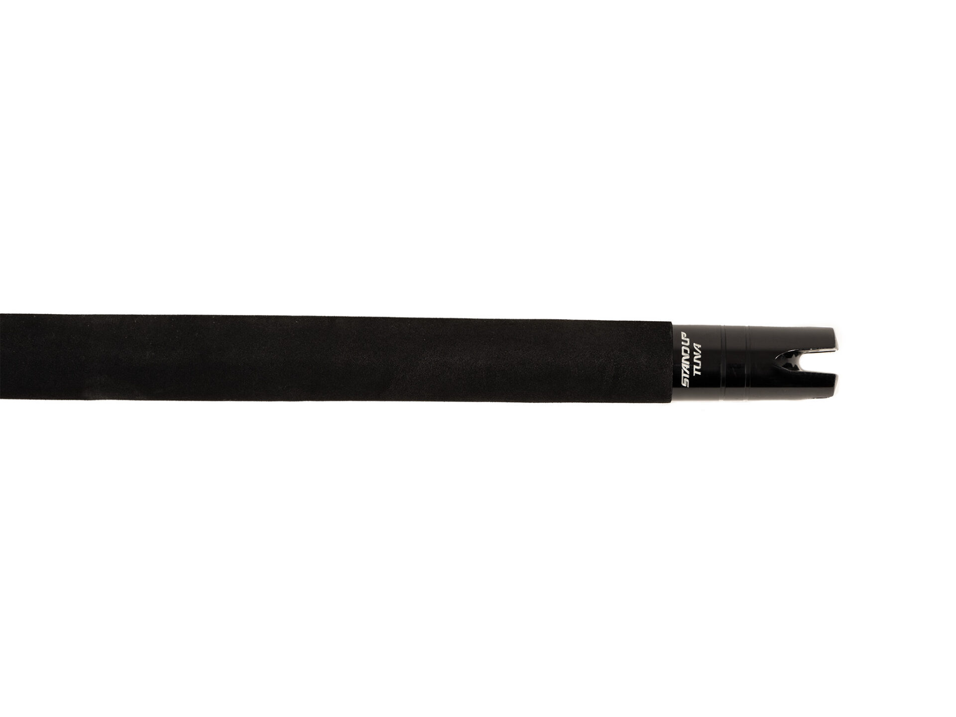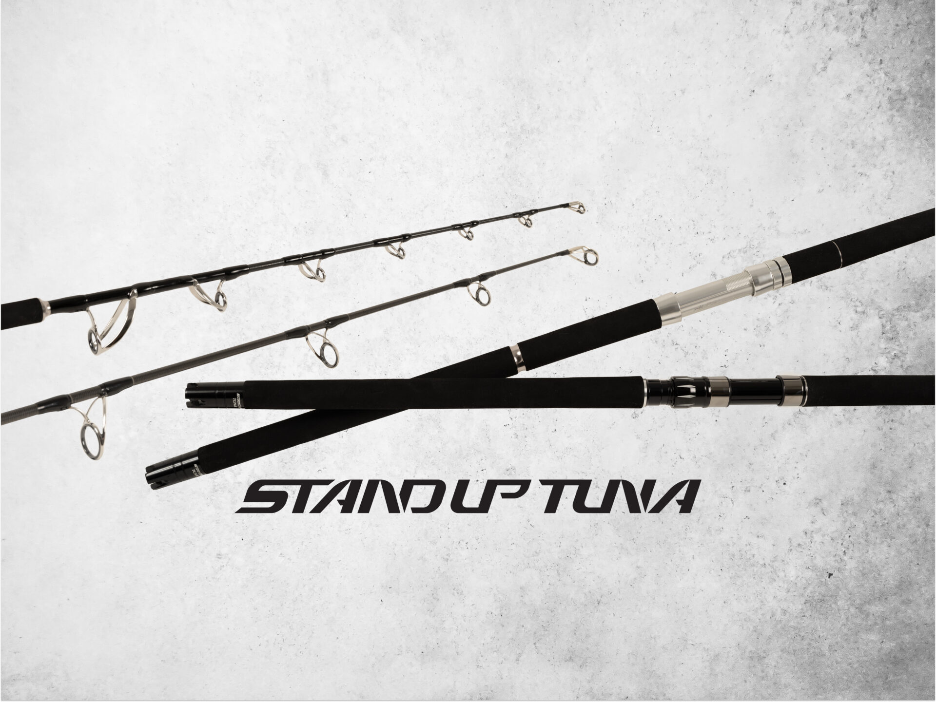もはや釣りというより闘いと表現した方がふさわしいモンスターサイズを相手に「シングルで、ロッドを立てた真っ向勝負」の実現にスタンダップツナシリーズの開発が始まりました。現在はリールとラインの強力を利用した綱引きファイトが主流ですが、この方法だとロッドの反発力が伝わらず魚にプレッシャーが掛けずらいため、ファイトに時間がかかること、また揚げられるサイズがロッドを立てるファイトより限られることなどの欠点がありました。より大きなサイズを短時間で揚げるためにはロッドパワーを効率的に活かす立てるファイトが理想であり、また何より大きな魚とロッドを立て対峙したいというアングラーとしての願望があります。従来までのツナロッドは全体に張りのある非常に強力なものが主流でしたが、これにはアングラーのパワーとスタミナが多く求められました。一方で魚からの強い負荷を和らげるための柔軟性を重視したロッドもありますが、リフトパワーが不足し魚が浮いてこない曲がりっ放しの辛いファイトになりました。スタンダップツナシリーズはこの2つのコンセプトを絶妙なバランスで仕上げており、アングラーは楽なのにモンスタークラスの魚を浮かすのに十分なパワーのあるロッド、長時間立ててファイトが続けられるロッドという理想を形にしています。