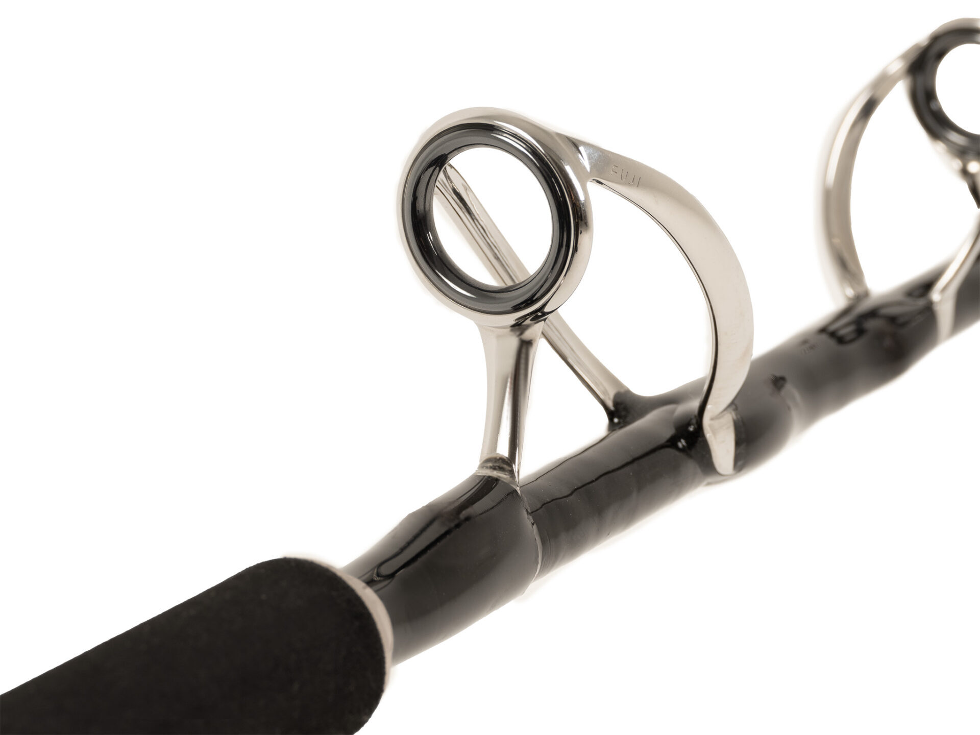 <ジギングロッド>ブラックマジック社ギンバルを使用した超高角度のファイトに対応し300キロクラスをターゲットとしたパワー設定です。リアグリップを長めに設定しているため5フィート感覚でのジグ操作が可能です