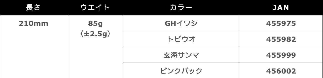 ロングキャストが可能な独自のボディーに 引き並みでも追い波でもエラーアクションが 起きにくいバランス設定