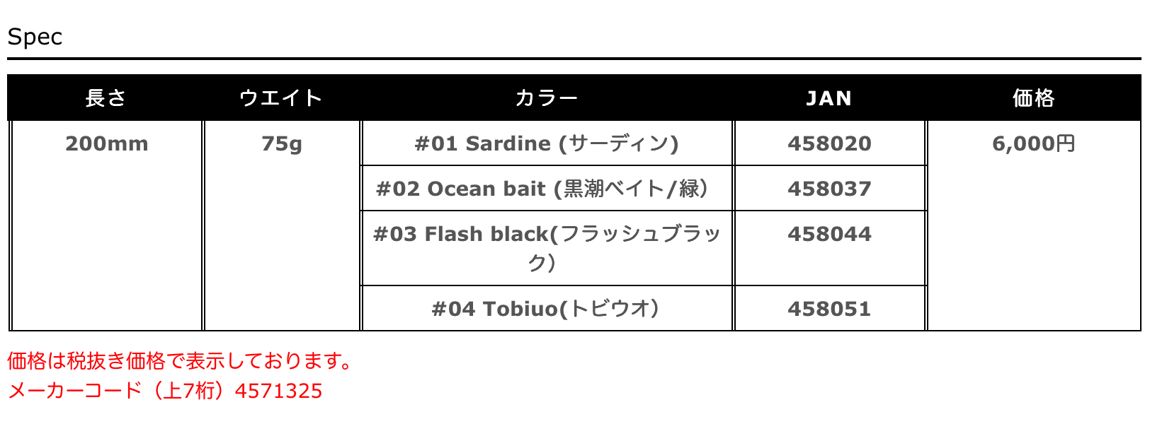 ▪︎200㎜/75g ▪フローティングモデル(ほぼ垂直浮き)▪︎フルタングステンウエイト