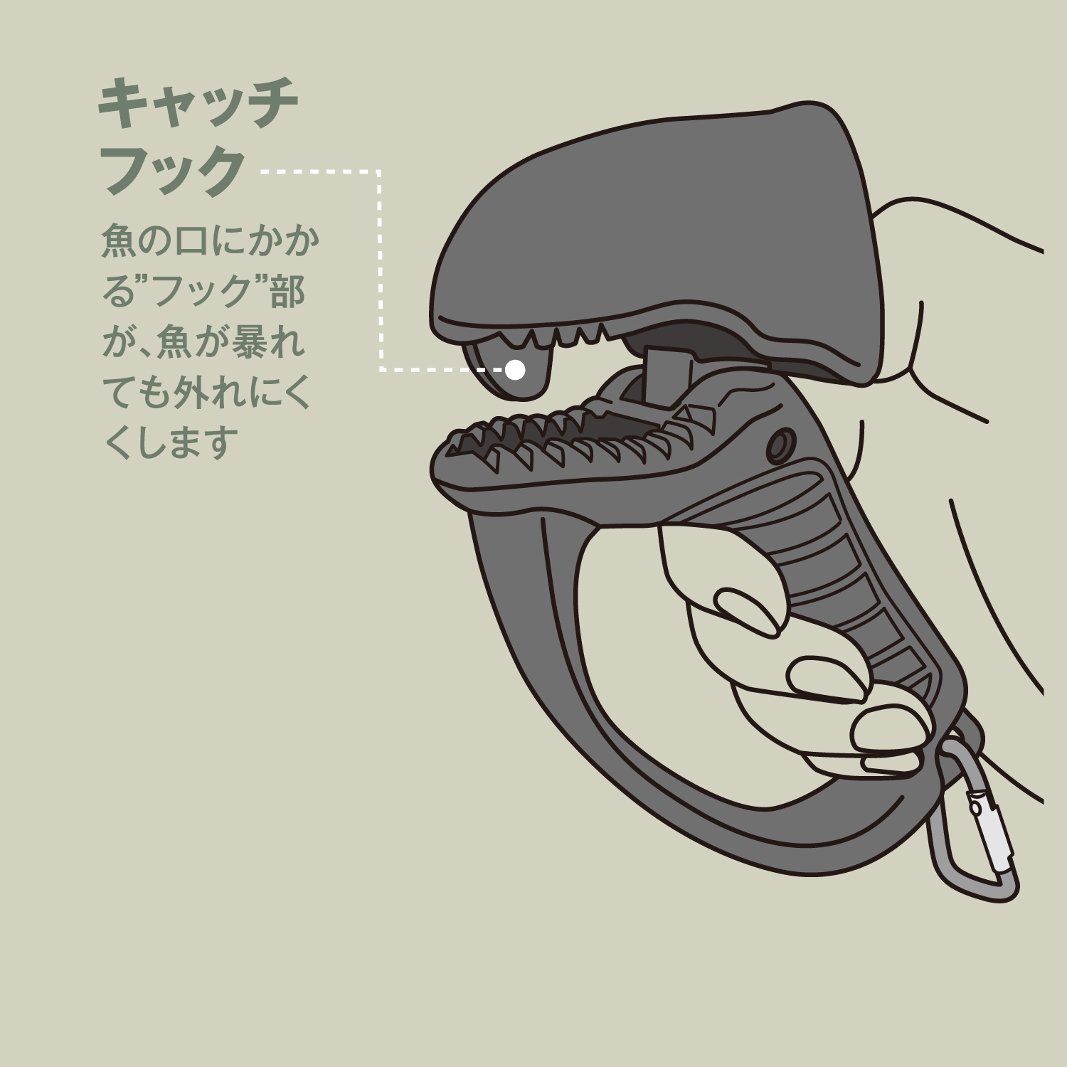 バス・シーバス・ロックフィッシュ・青物等の口の大きい魚を、ダイレクトにつかむことが出来ます。