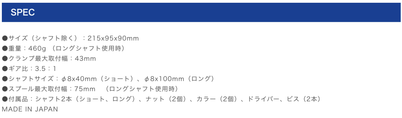 単体スプールと連結スプール用にショート・ロング2種類のシャフトを装備。