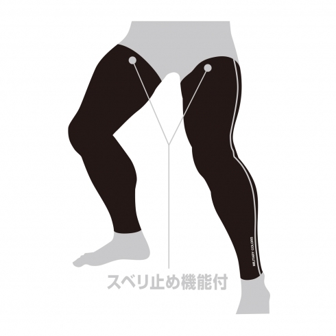 ズレ落ちにくいように、太もも側の履き口部分はゴム+シリコーンのスベリ止め加工を施しました。