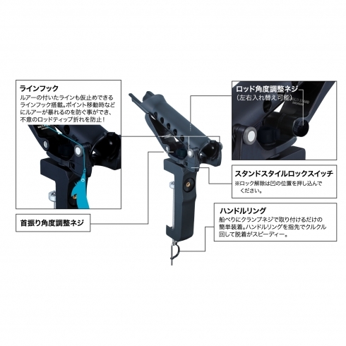 ロッドを垂直ではなく角度を付けてキープできるので、取り込み時に絡まりがちなイカメタルやバチコンアジングなどエダスの付いた仕掛けも絡まりにくい。