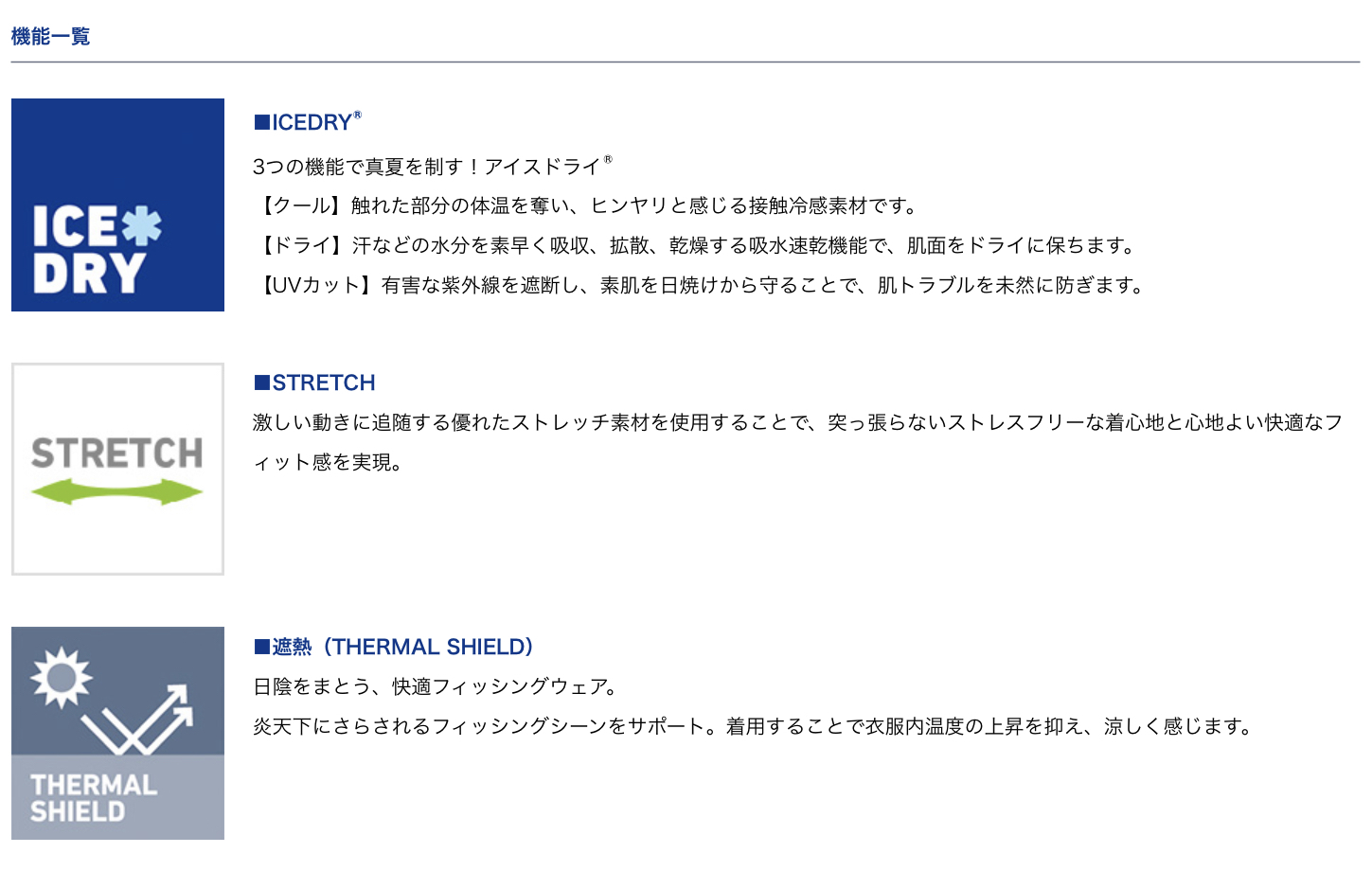 接触冷感/UPF50+/吸水速乾のアイスドライ®素材を採用。