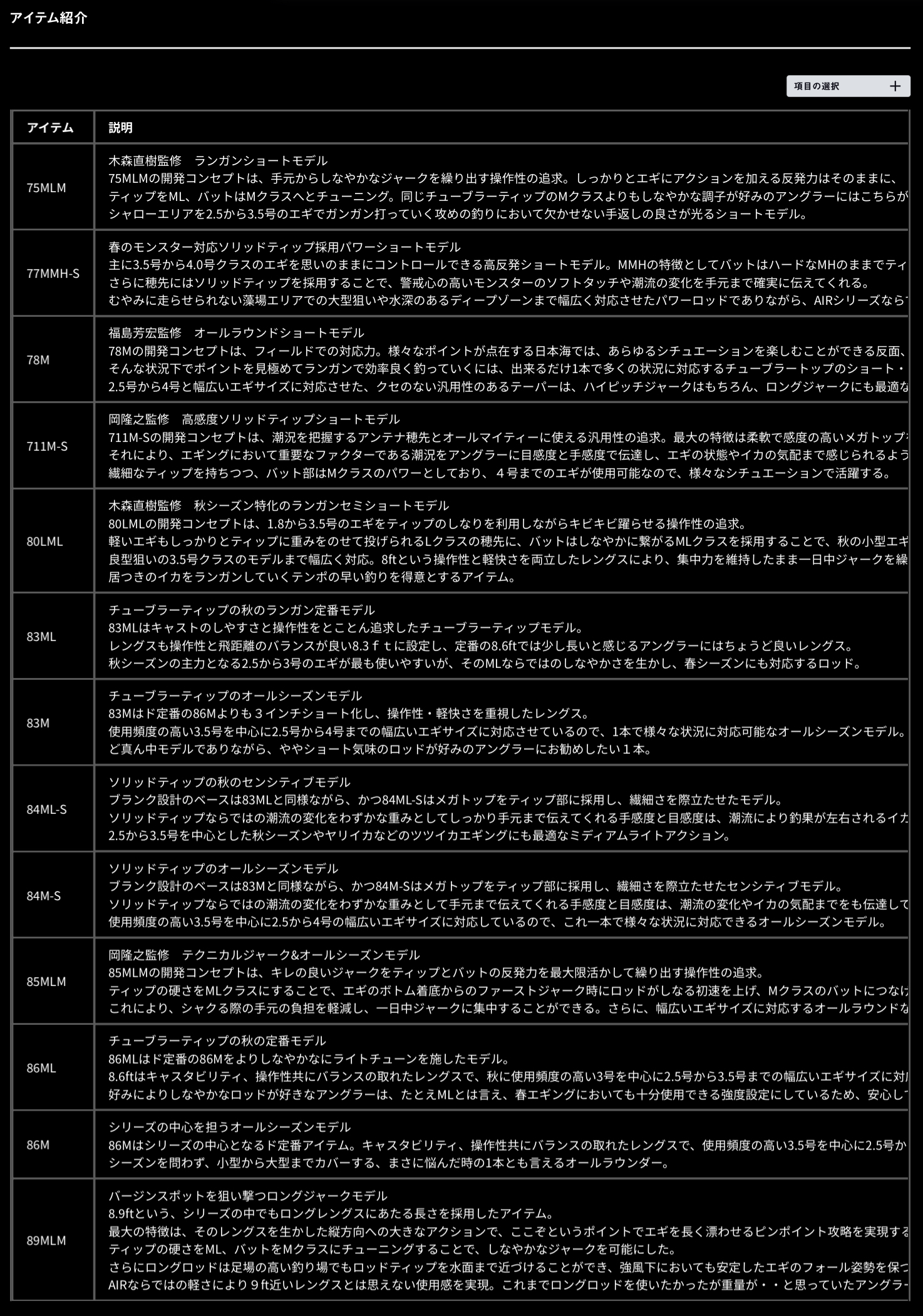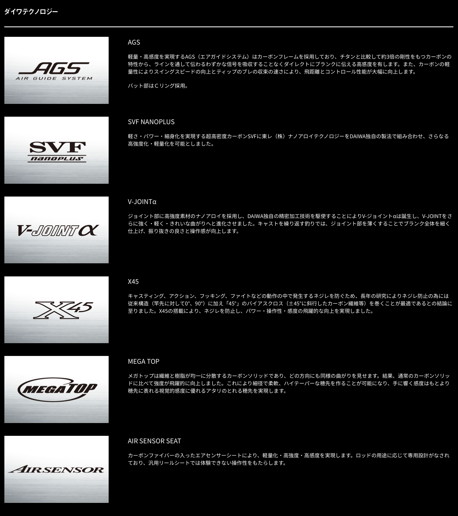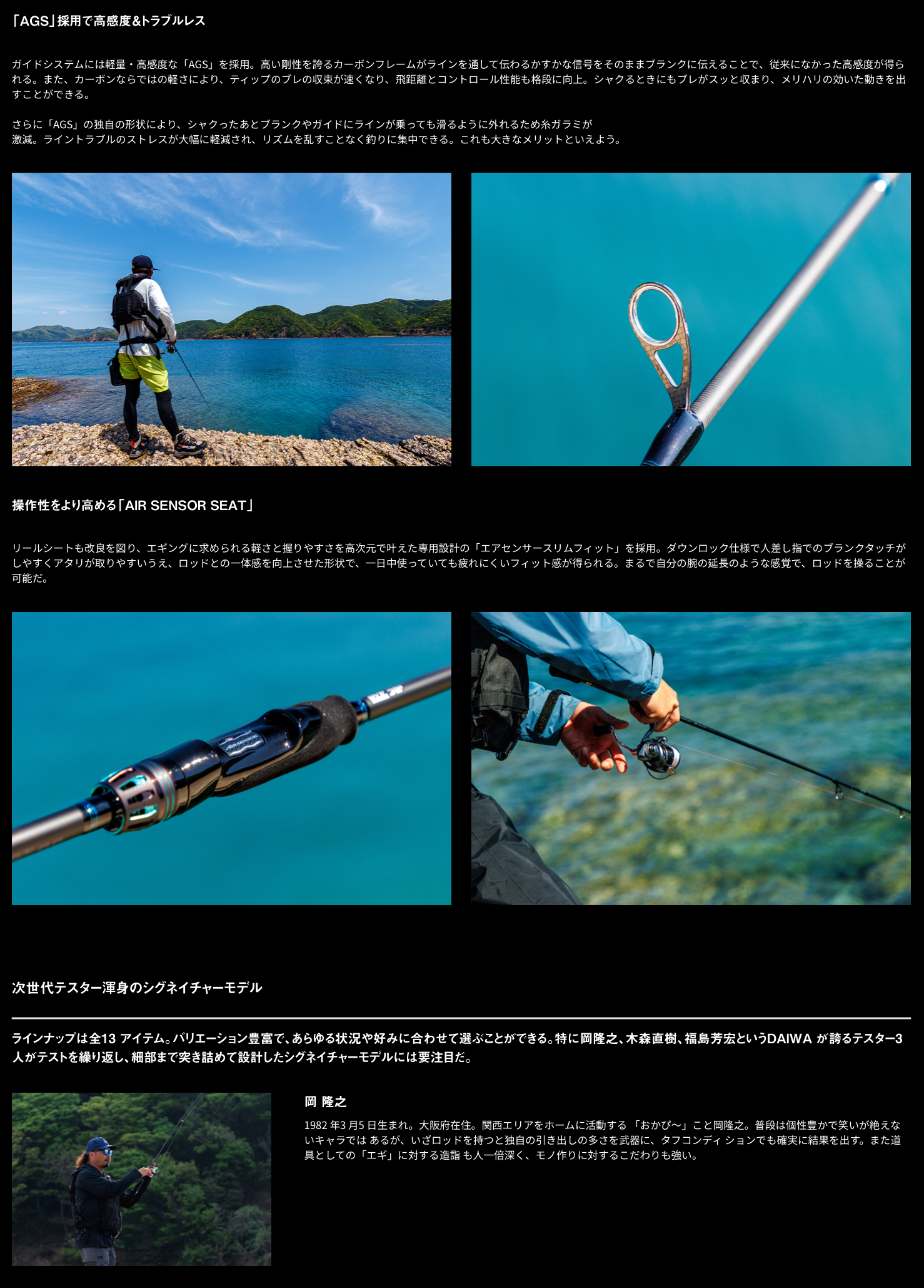 V-JOINTα搭載により、ワンピースに近いシャクり心地を実現。ソリッドティップ(-S)モデルは繊細かつ、高感度なメガトップ採用。