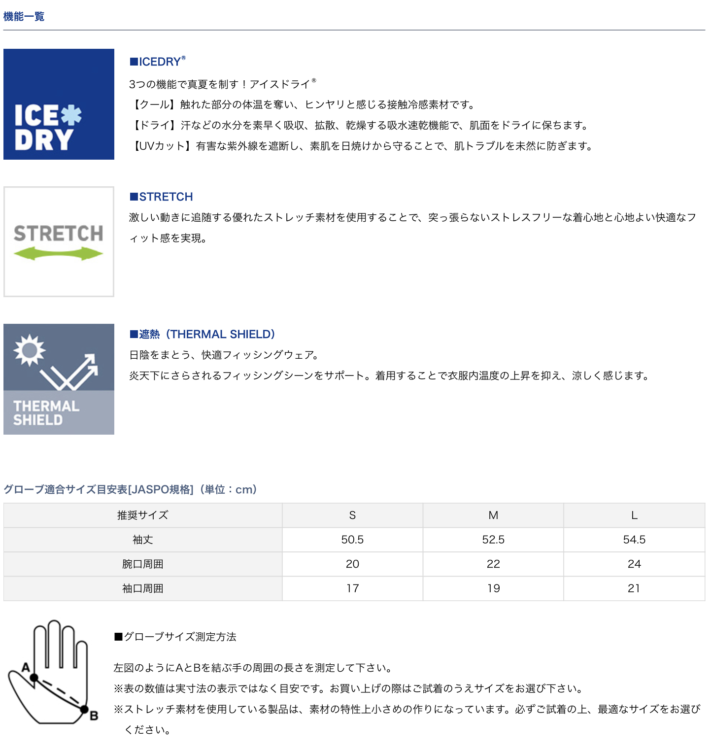 ストレッチ/UVカット(UPF30吸水速乾のアイスドライ®素材を使用。