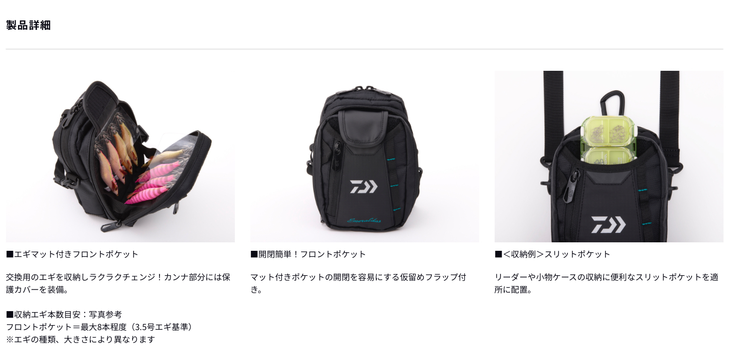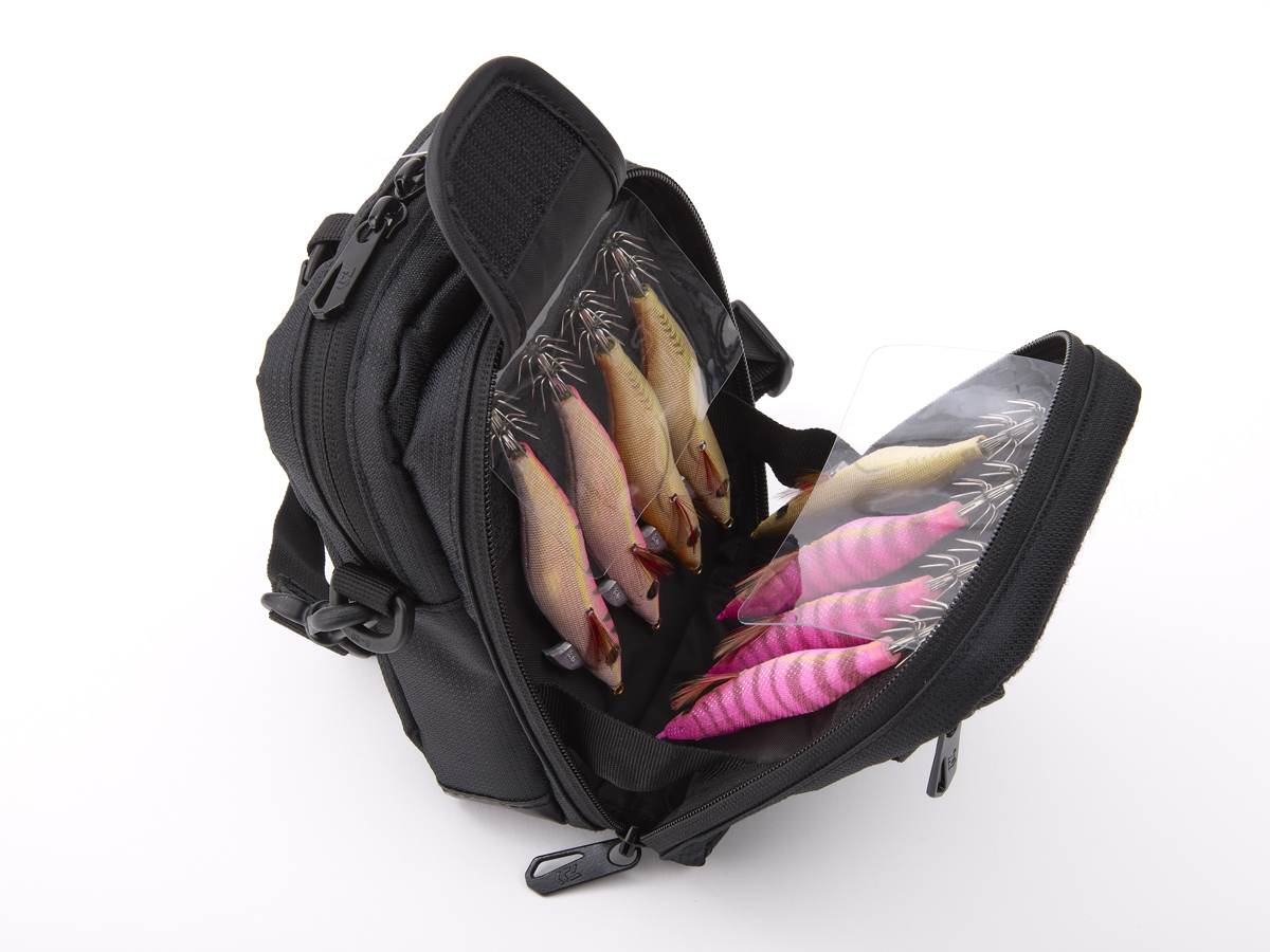 「エギマット付きフロントポケット」で交換用のエギを収納しラクラクチェンジ!