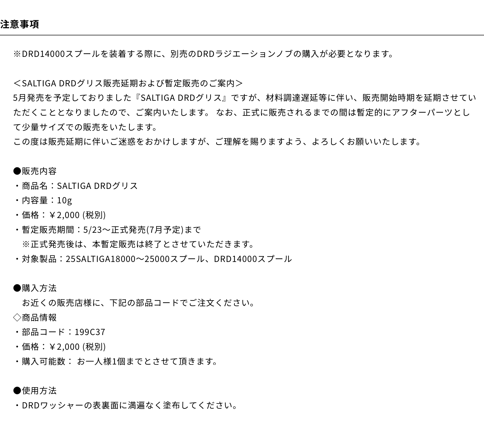 純正にはない中型専用DRD14000スプールをラインナップに加え25SALTIGAオプションスプールが登場。