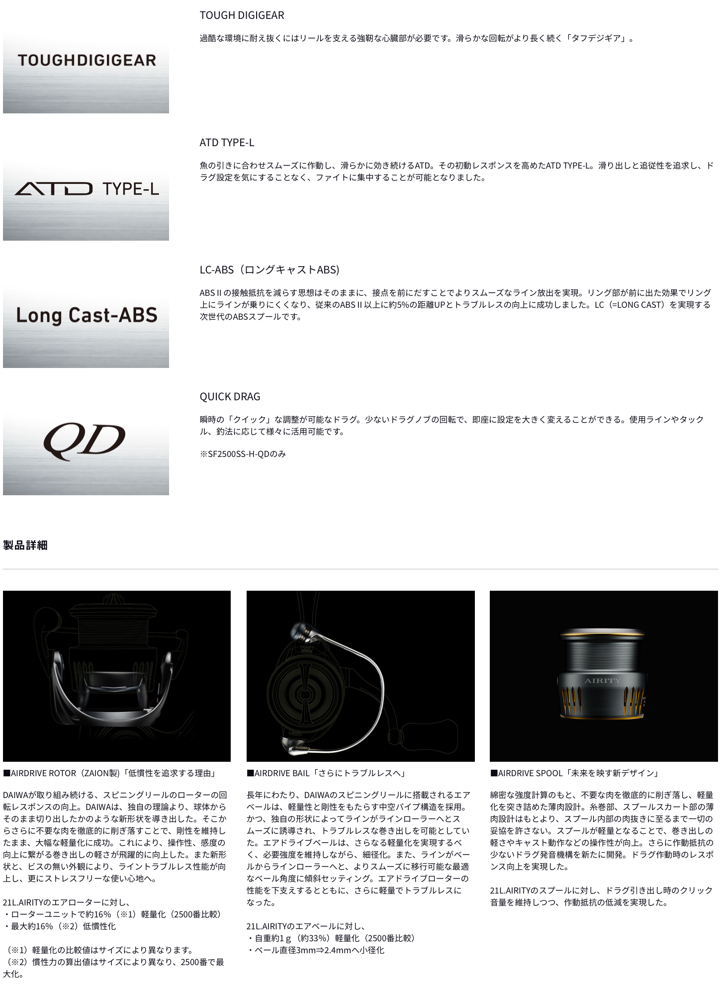 スプールには、リップ形状を見直すことで約5%の飛距離アップを実現したLC-ABSを採用など、ダイワテクノロジーの粋を集めた。