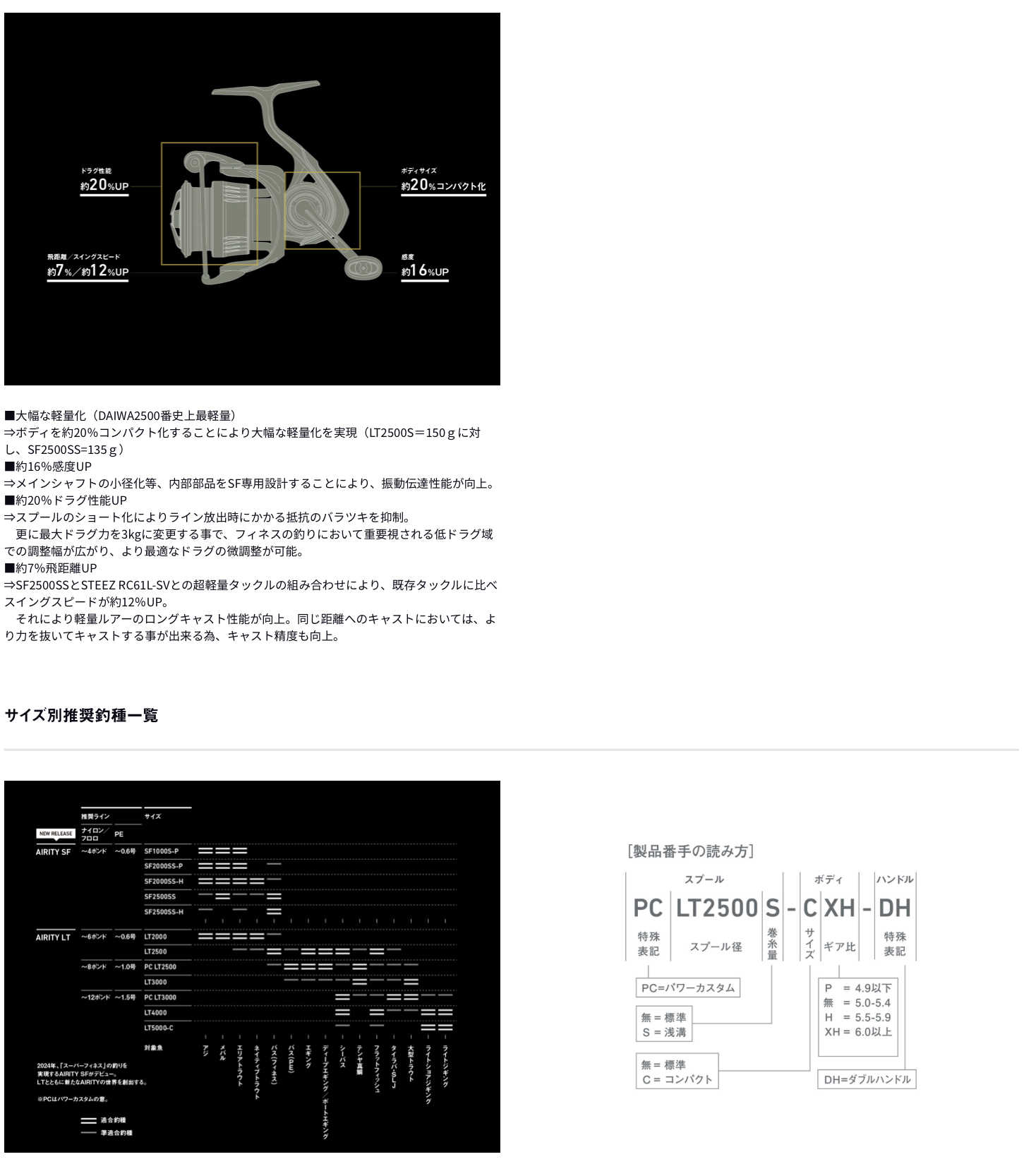 LT2500Sで150gと、自重としての軽さはDAIWA史上最高レベルに到達。同時に、“自重以外の軽さ”も手に入れた。