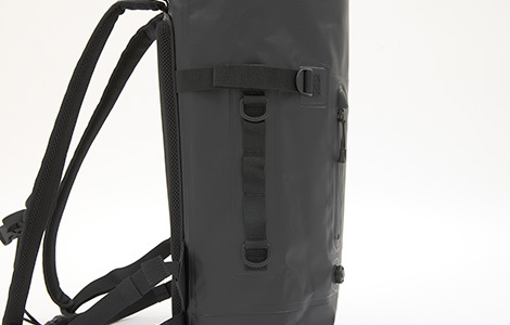 サイドにベルトループとDリングを装備し小物の取り付け可能。
