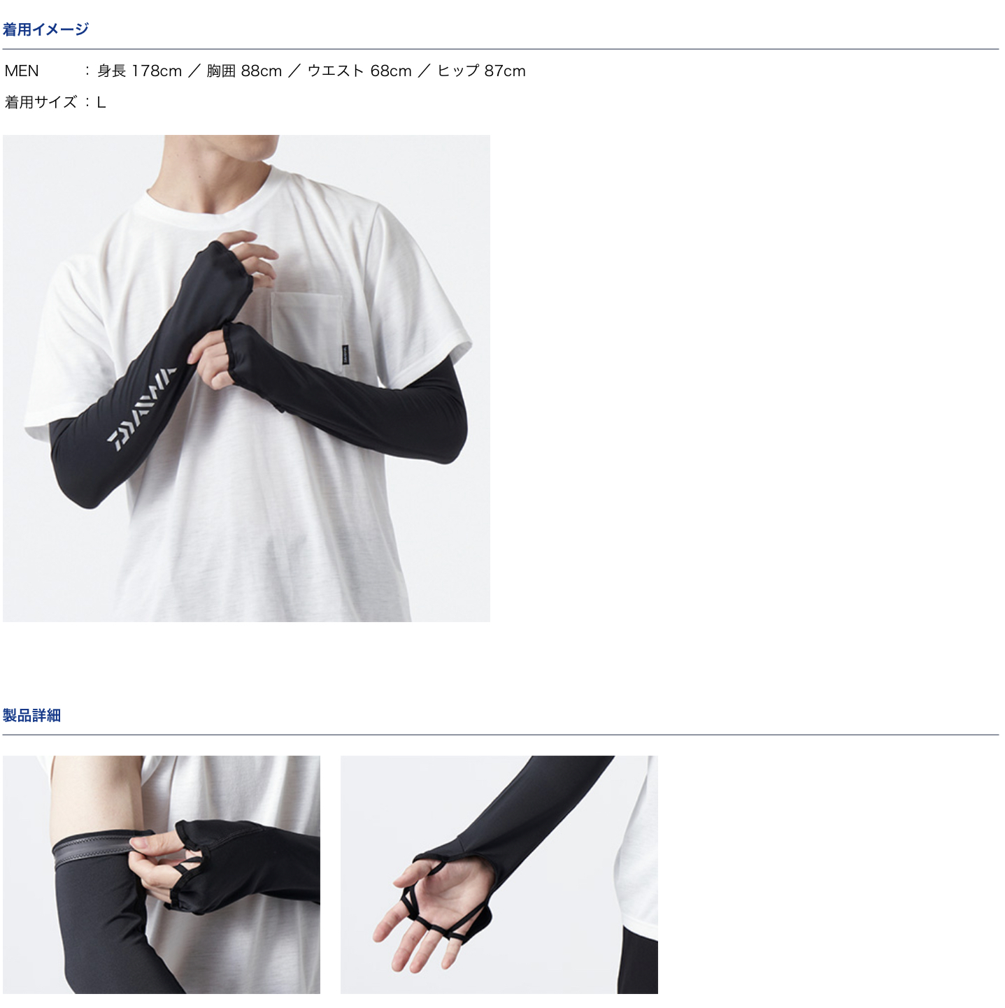 肌の露出を最小限に抑えた手甲付きアームカバー。