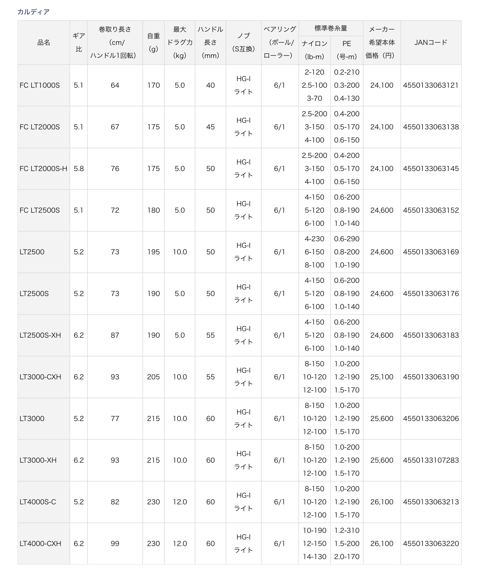 ■自重190g達成[21CALDIA LT2500S(FC LT2500Sで180g)]