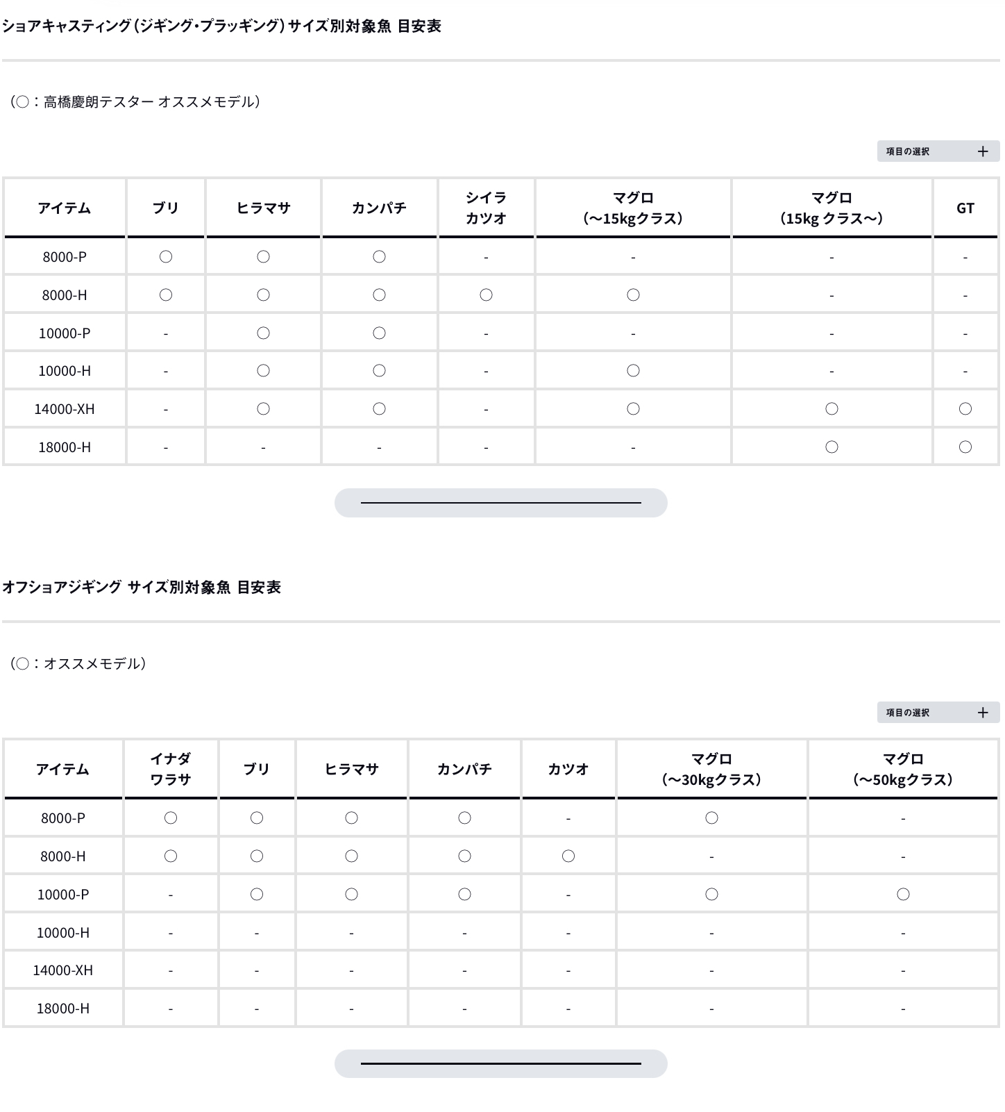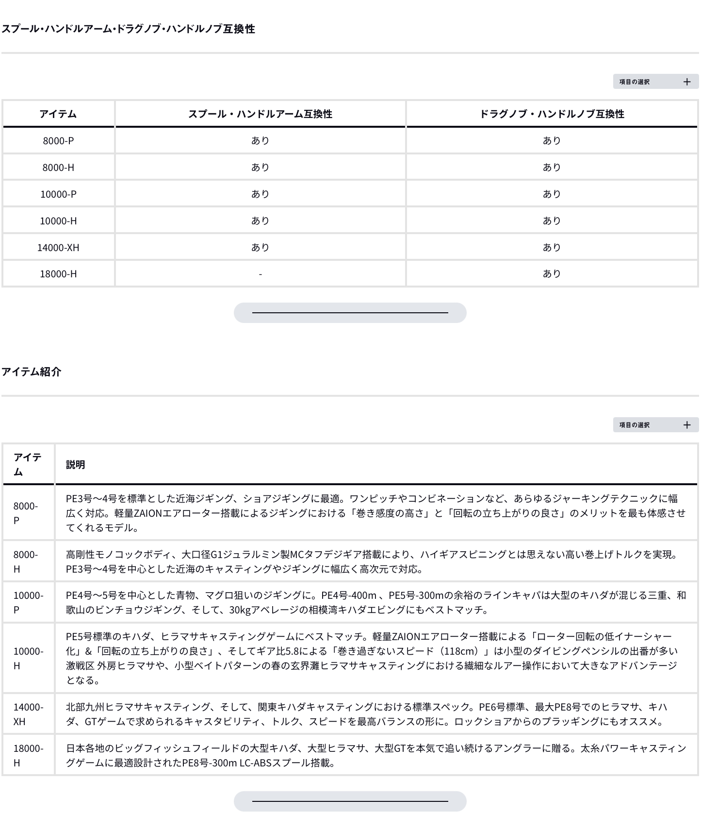 キャスティング主体のハイギアモデルはハイグリップエッグノブ、ジギング主体のパワーギアモデルは軽量ラウンドEVAノブを採用。