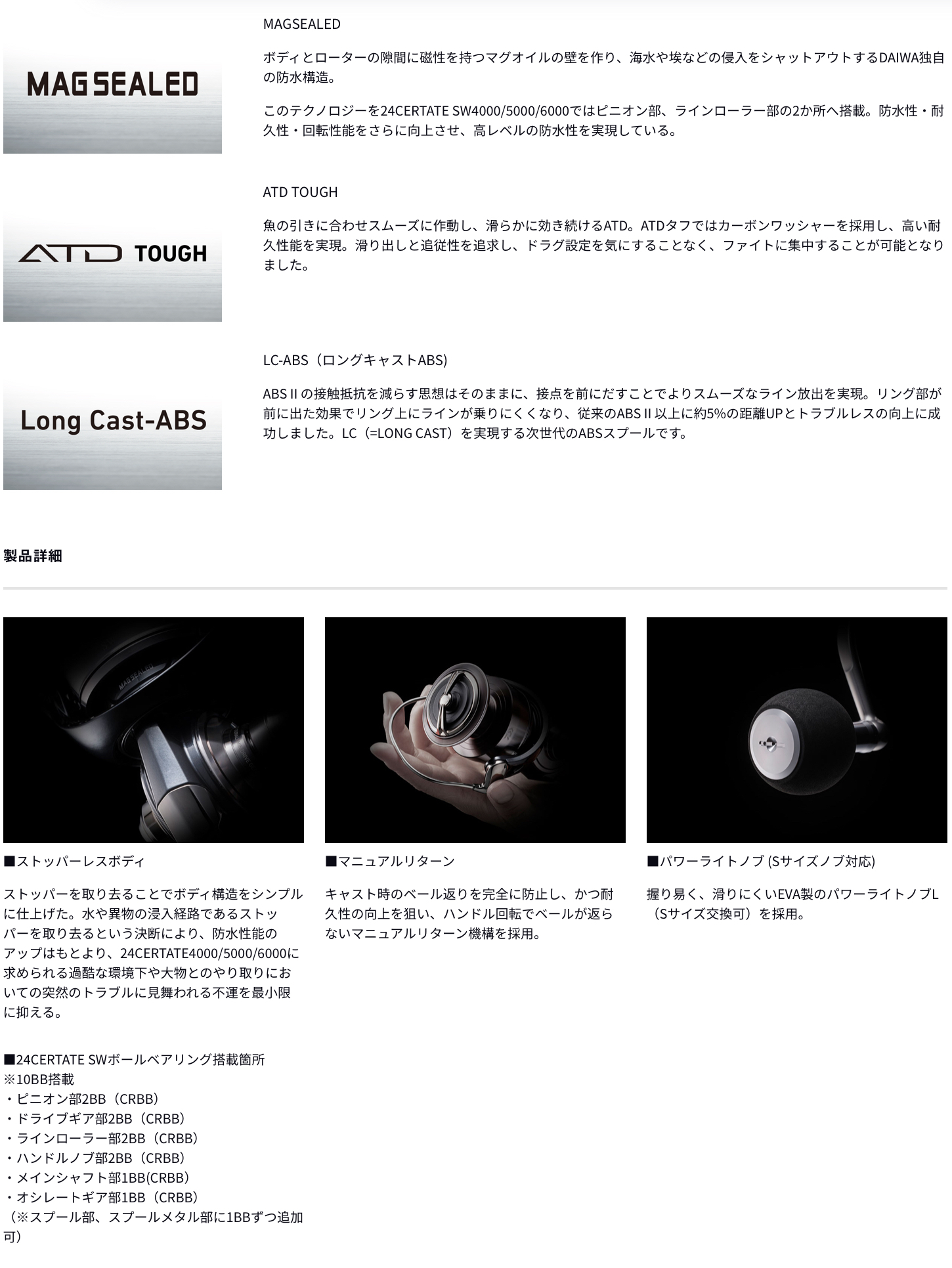 こうした最適化は、ボディユニットだけではない。フロントユニットでは、ZAION製ローターを大型化・肉厚化することで、同番手のCERTATEに比べ、約39%もの剛性アップを果たしている(LT5000番比較)。ベールは、大型ルアーの使用を想定し、キャスト時の不用意なベール戻りを制御し、事故を未然に防ぐ、マニュアルベールリターンを採用した。