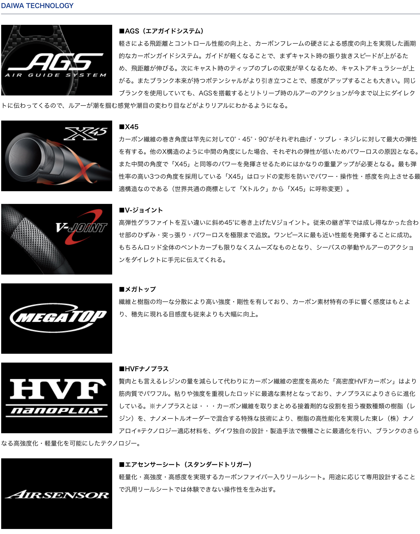 感度面においては軽量・高剛性・トラブルレスの『AGS』を搭載。『AGS』の高剛性は感度アップに大きく貢献。またグリップは手感度を高めるエアセンサーグリップを採用し更に軽量化と操作性が向上した。。