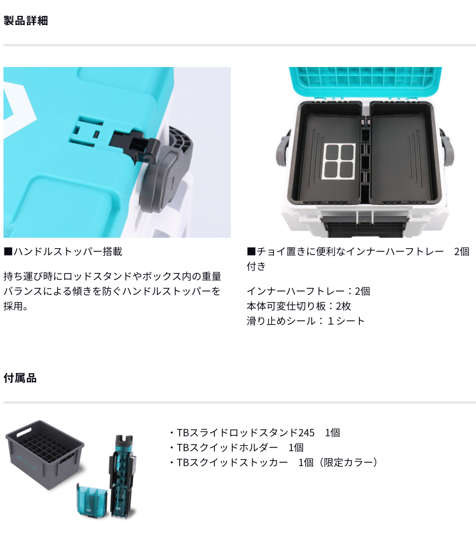 本体サイドにはロッドスタンドTBなどに対応した多目的ホルダーを装備しスタイルに合わせて機能を拡張可能。