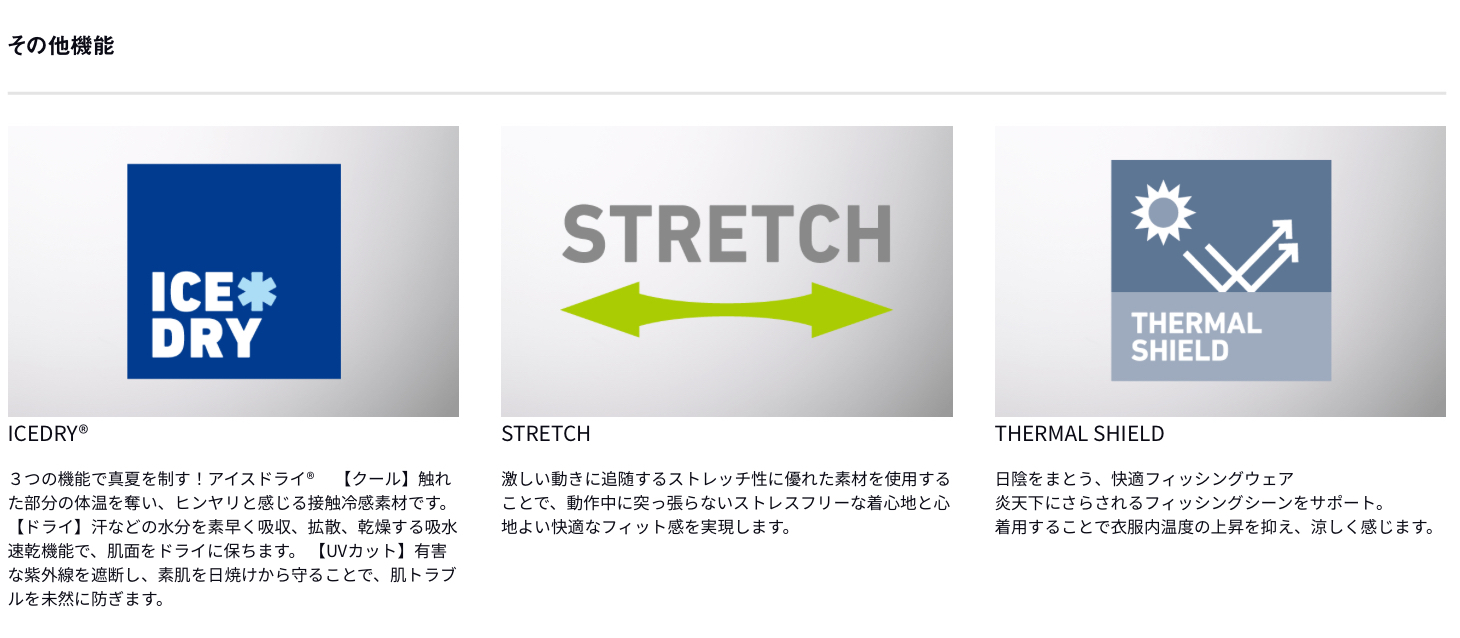 接触冷感/UPF50+/吸水速乾/4WAYストレッチ素材を採用。