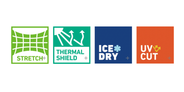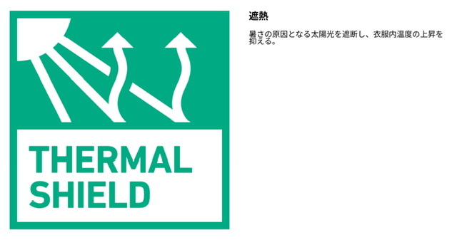 太陽光の熱線・紫外線を遮蔽し、ウェアやウェア内の温度上昇を抑えるクーリング機能素材。