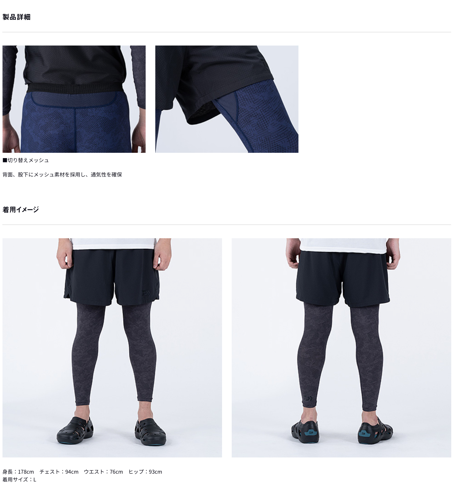 ウェスト、股下にはメッシュを採用し、通気性を確保。