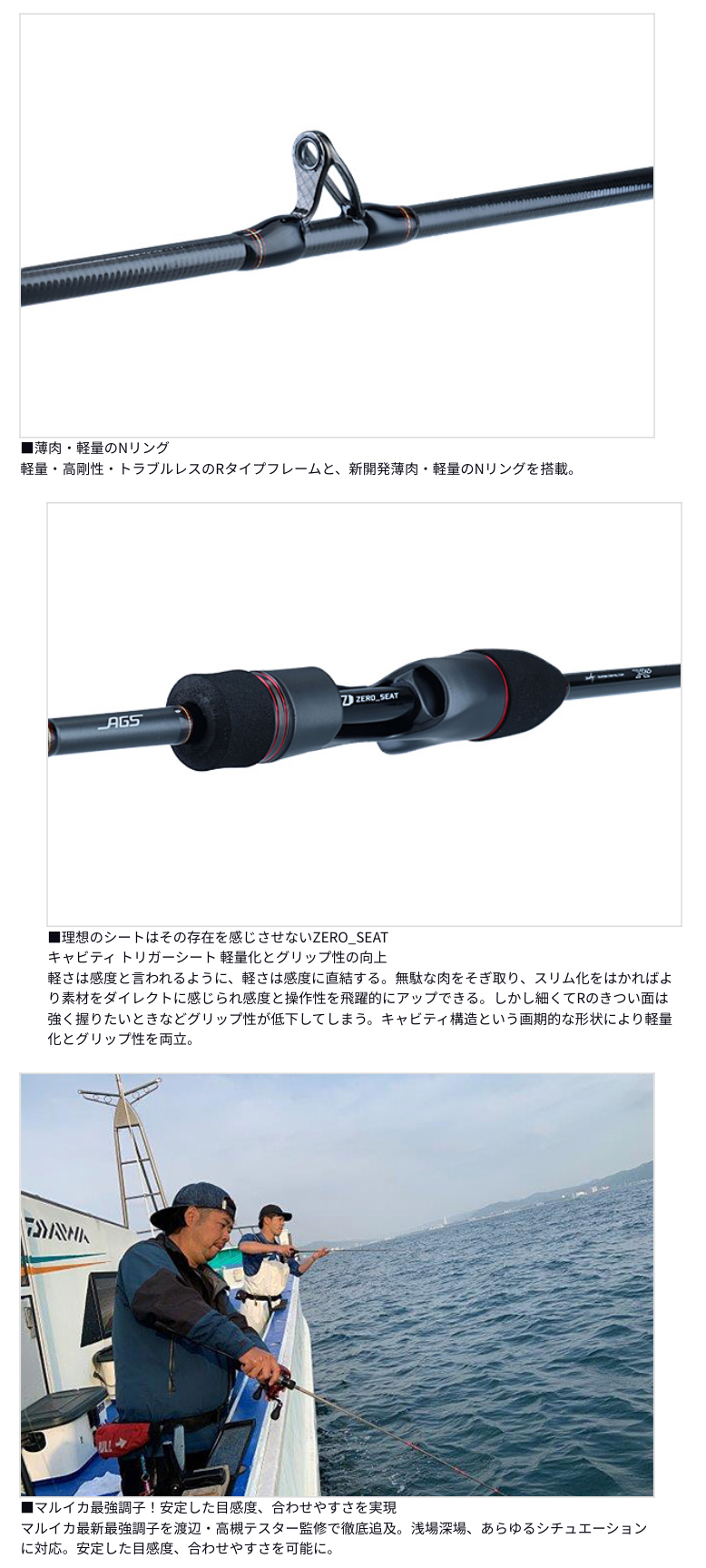 ⇒穂持ち~穂先に関しては、先端をより柔軟に、より先調子にしてゼロテン時の目感度と合わせの効く調子を追求。シーズン的に一番長い[オモリ40-50号:水深50-60m]をメインにして、高い汎用性を実現。