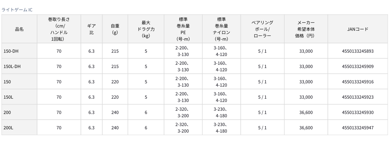 滑らかな巻き上げと軽さを兼ね備えた高剛性IC付きLIGHT GAME対応モデル。