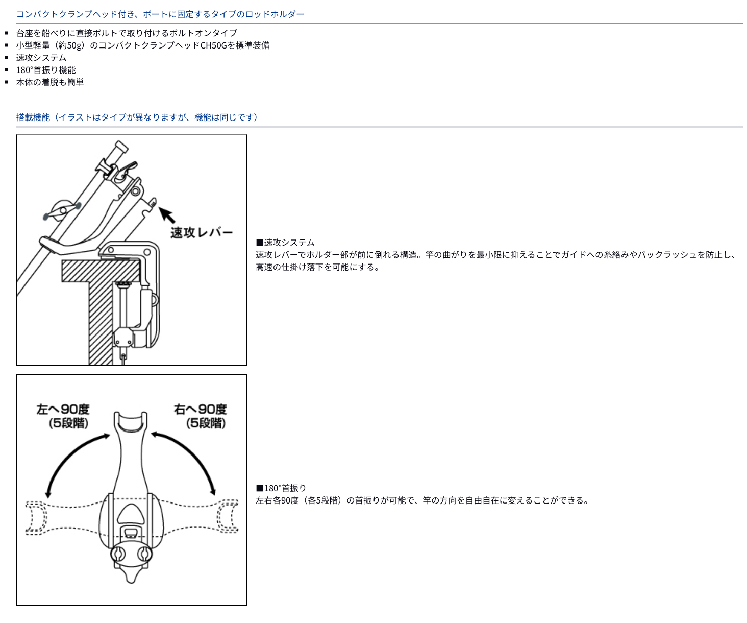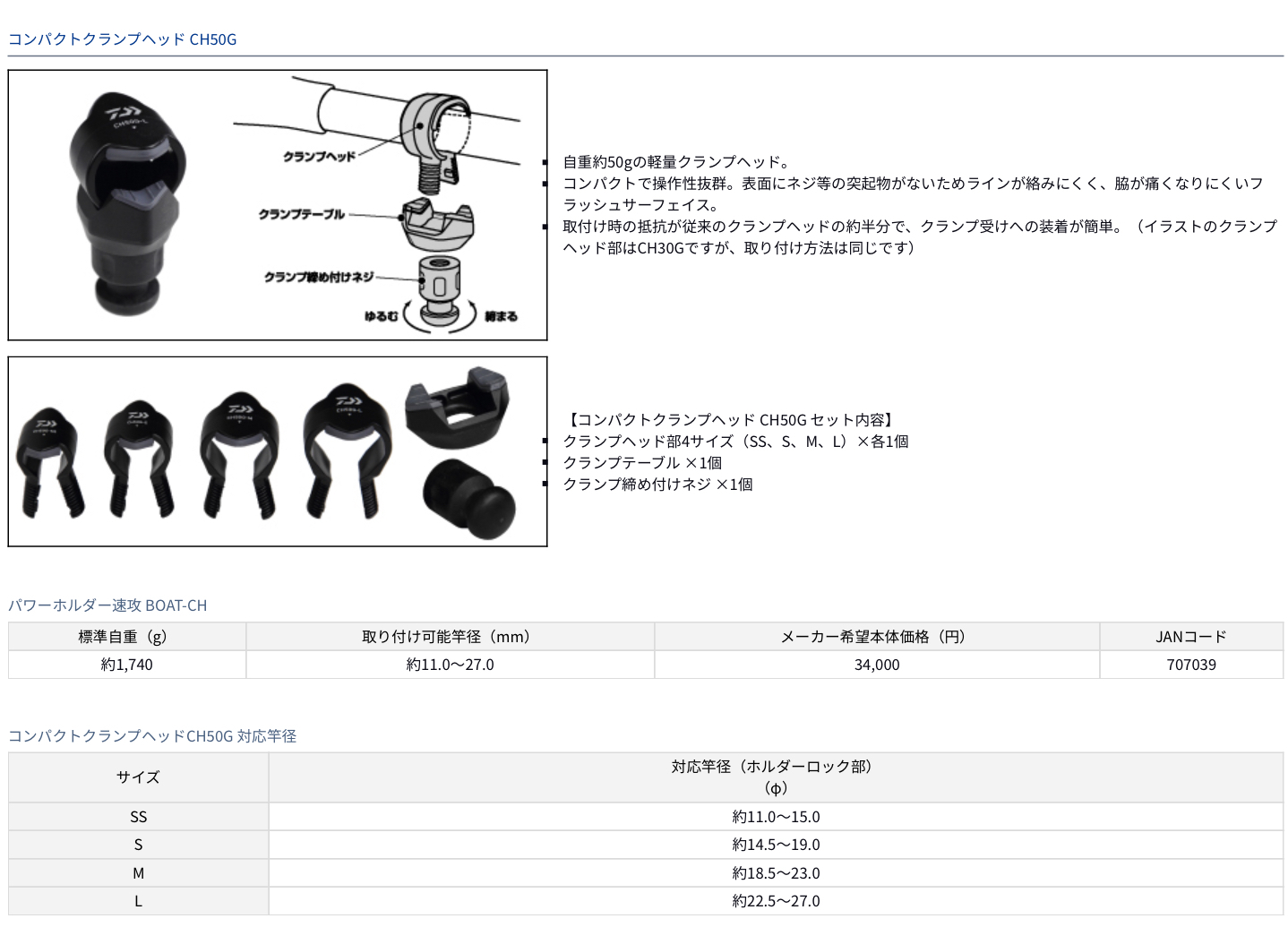 ▪ 小型軽量(約50g)のコンパクトクランプヘッドCH50Gを標準装備