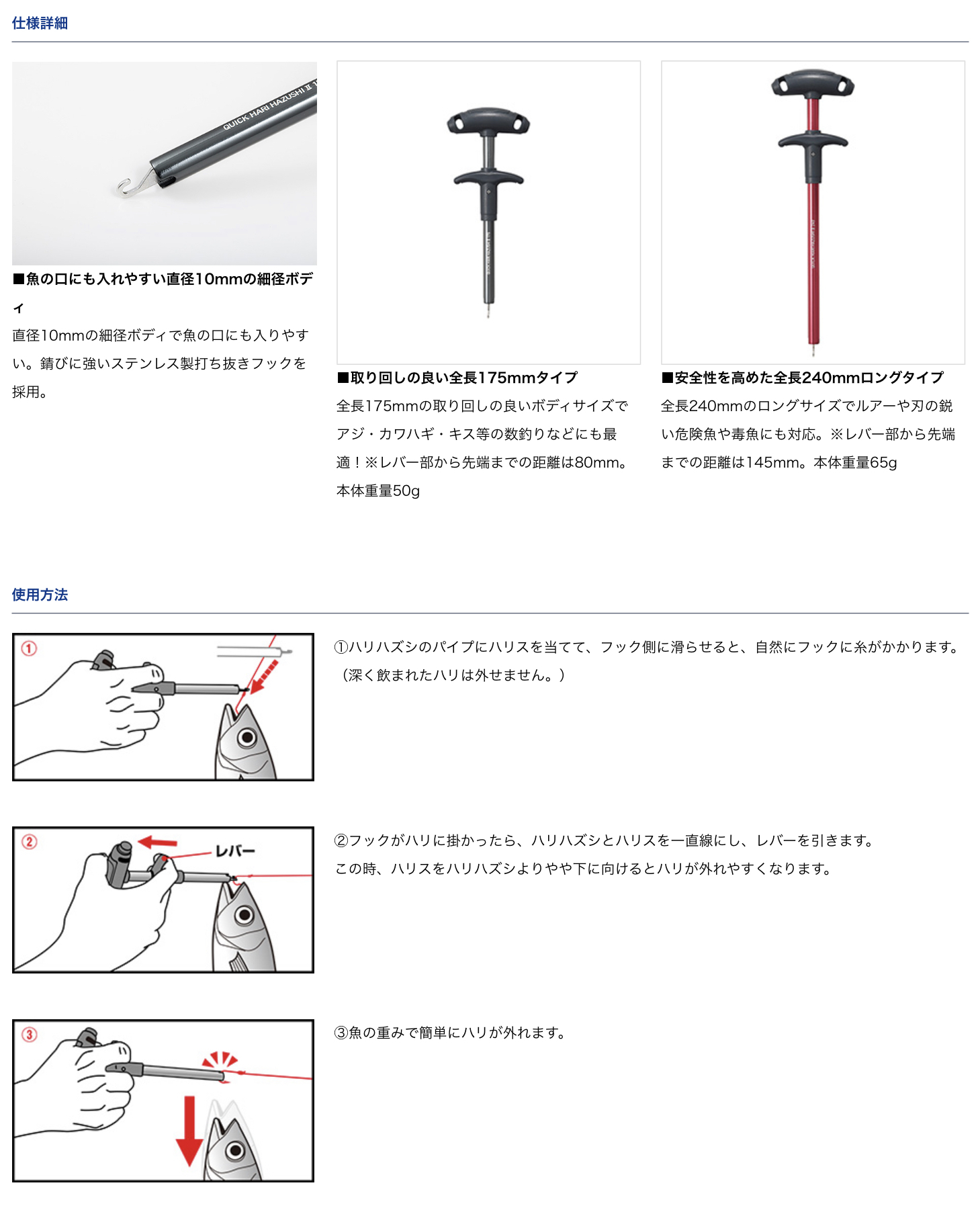 ・魚体に触らず簡単にハリハズシ!毒魚や危険魚を触らずリリース可能。