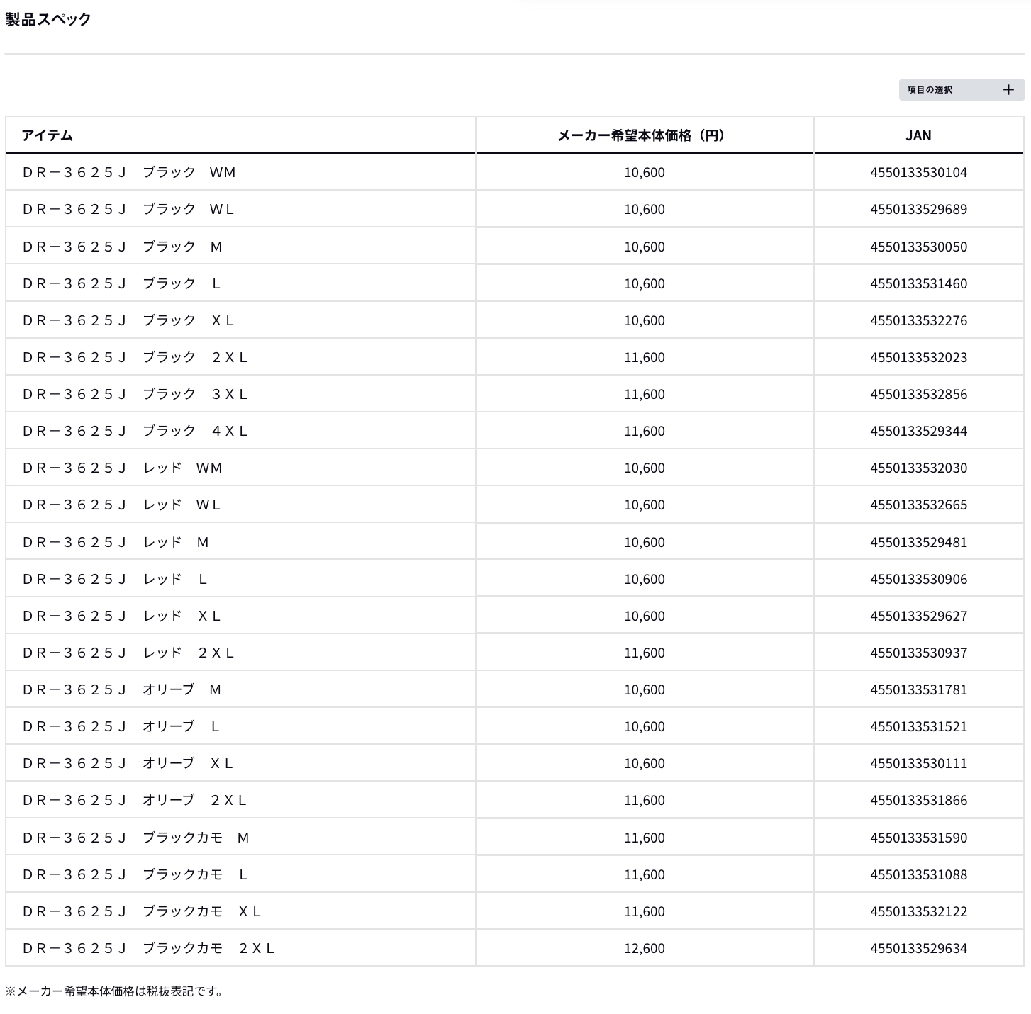 上下別売りモデルで自分のサイズに合わせての購入や、買い替え時などに便利。