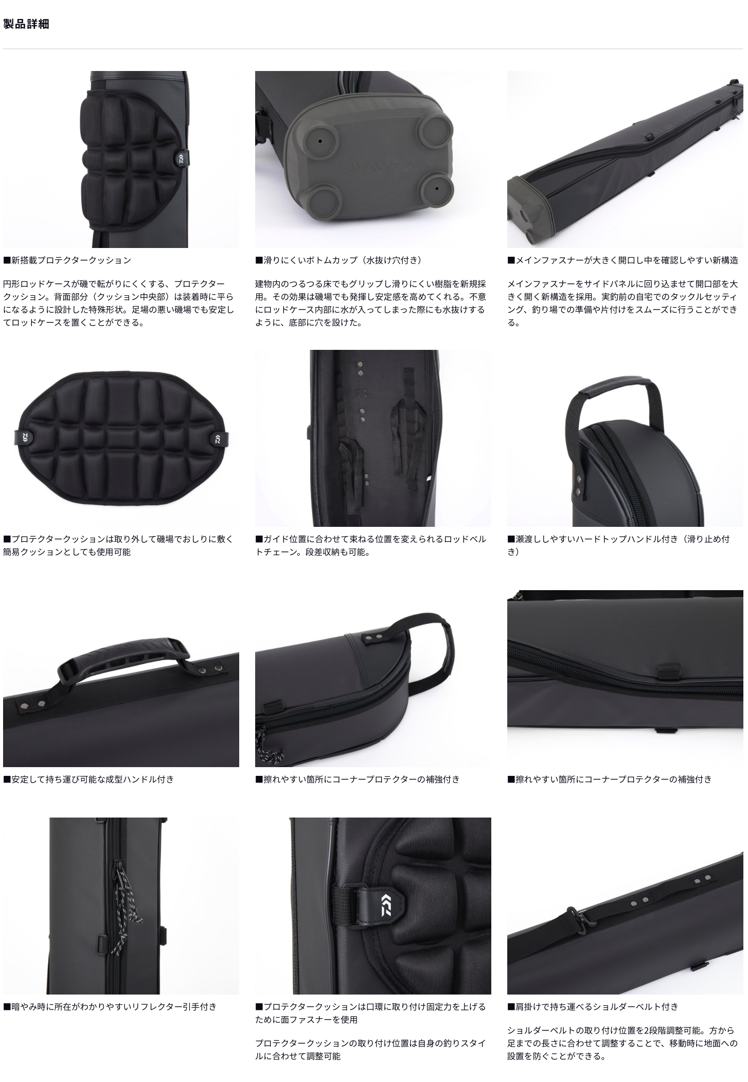新搭載プロテクタークッションは磯場で転がりやすい円形のストレートロッドケースを転がりにくくする新機能。