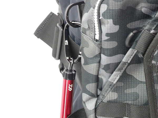 ・ベストやバックのDカンに簡単取り付け出来るカラビナ付き。