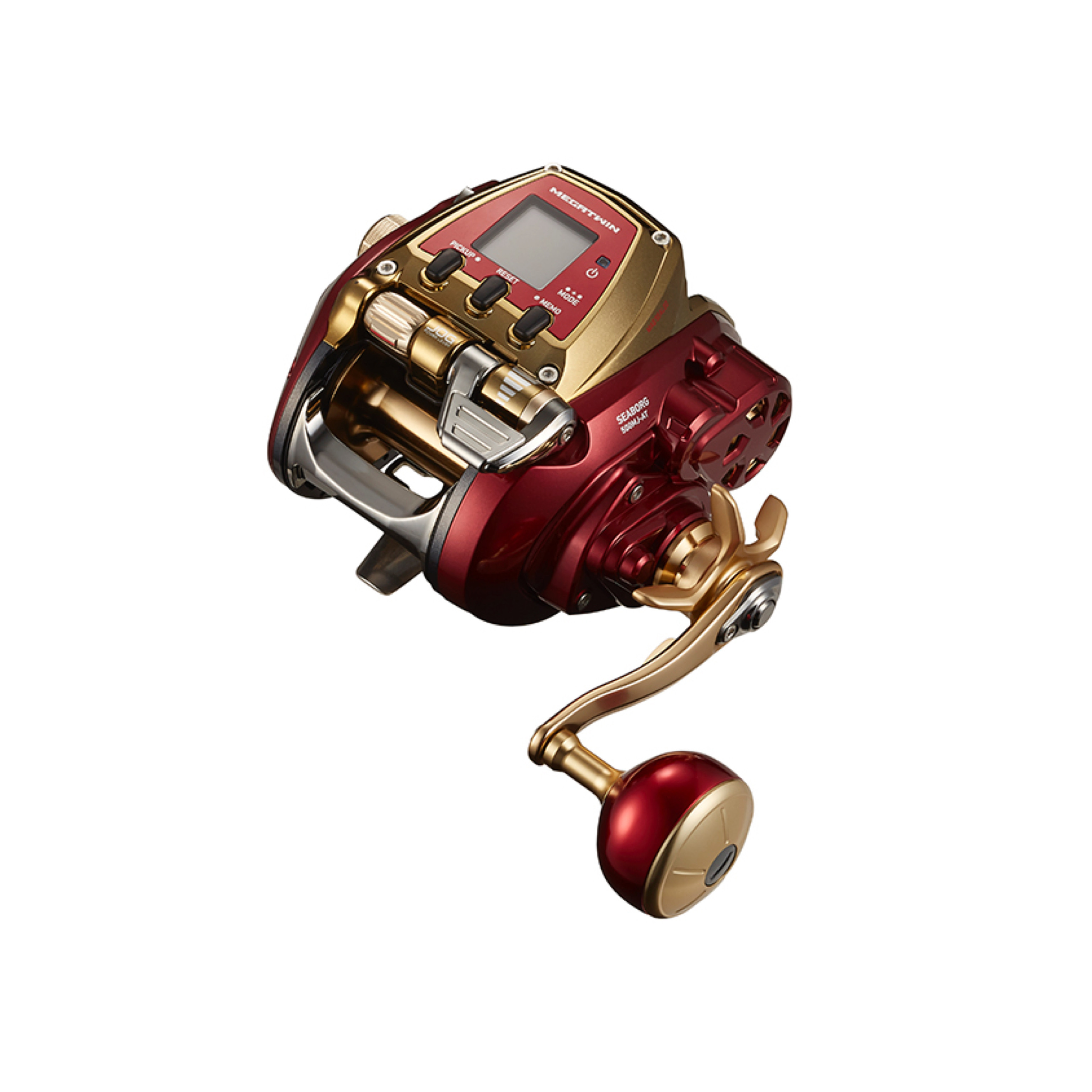 シーボーグ500MJベースにアルミJOG/NEWフカセクラッチシステム/自動棚停止機能を搭載したメガパワー&メガスピード電動。ヒラマサ・ブリの青物、スルメの多点掛け、中深場の根魚から玄達フカセヒラマサまで幅広いターゲットに対応するフラッグシップモデル。心臓部には、トルクと瞬発力を両立したMAGMAXモーターを搭載。モーターハウジングにアルミ部材を施し、放熱性・耐久性に優れたタフセッティング。併せてパワーとスピードのギアを変速ショック無く快適に切り替えるMEGATWIN-PROを採用。さらに青物の疾走をいなし、滑らかに効き続けるタフドラグATDで不意の大物にも安心対応。操作性においては、瞬時な巻上げで主導権を譲らないワンハンド快適操作アルミJOGパワーレバーを採用。また落下スピードを瞬時に設定できるフォールブレーキダイヤルは落とし込みのベイトの付き、スルメイカの中層反応を捉える優れもの。耐久性においては防水・耐久テクノロジーMAGSEALEDボールベアリングで初期性能を持続。さらにカウンター部には、偏光グラス使用時にも鮮明に見える大型ドット液晶を採用。新たに「NEWフカセクラッチシステム」「自動棚停止機能」を追加。周年あらゆるターゲットに対応するAUTOMATIC MEGA MONSTER