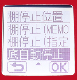 予めメニュー画面にて棚を指定⇒投入時設定した棚で自動停止