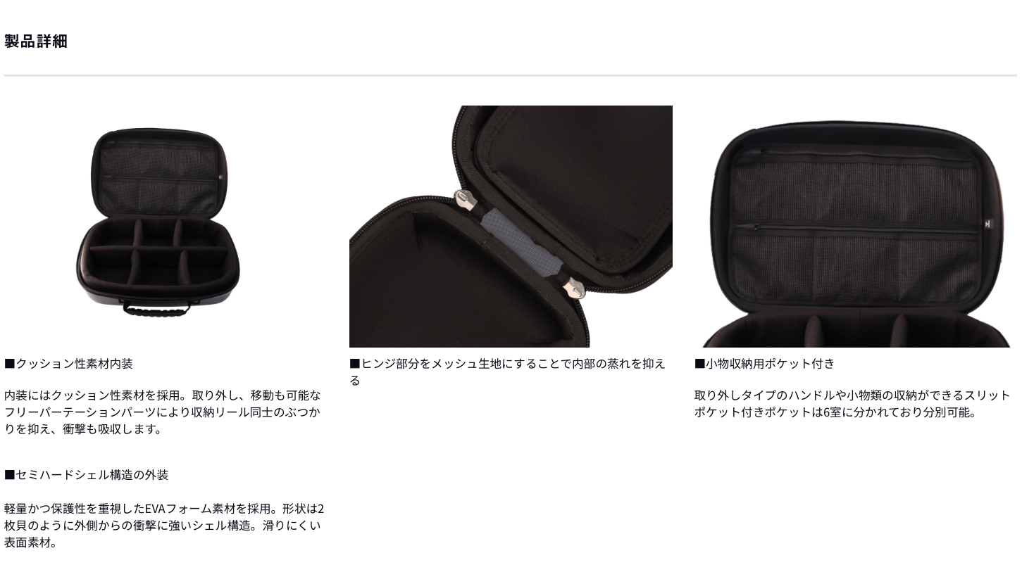 本体内部はリールの傷つきを抑える厚肉クッション材仕様。
