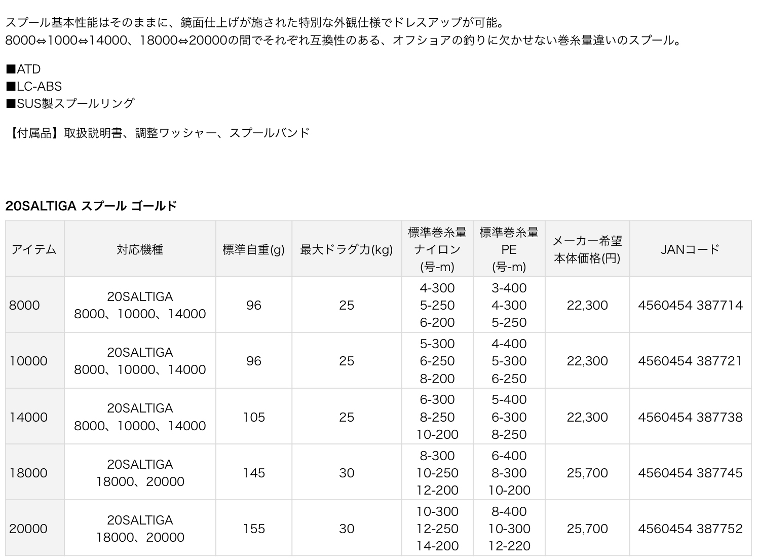 DAIWA SLP WORKS SALTIGA SPOOL GOLD