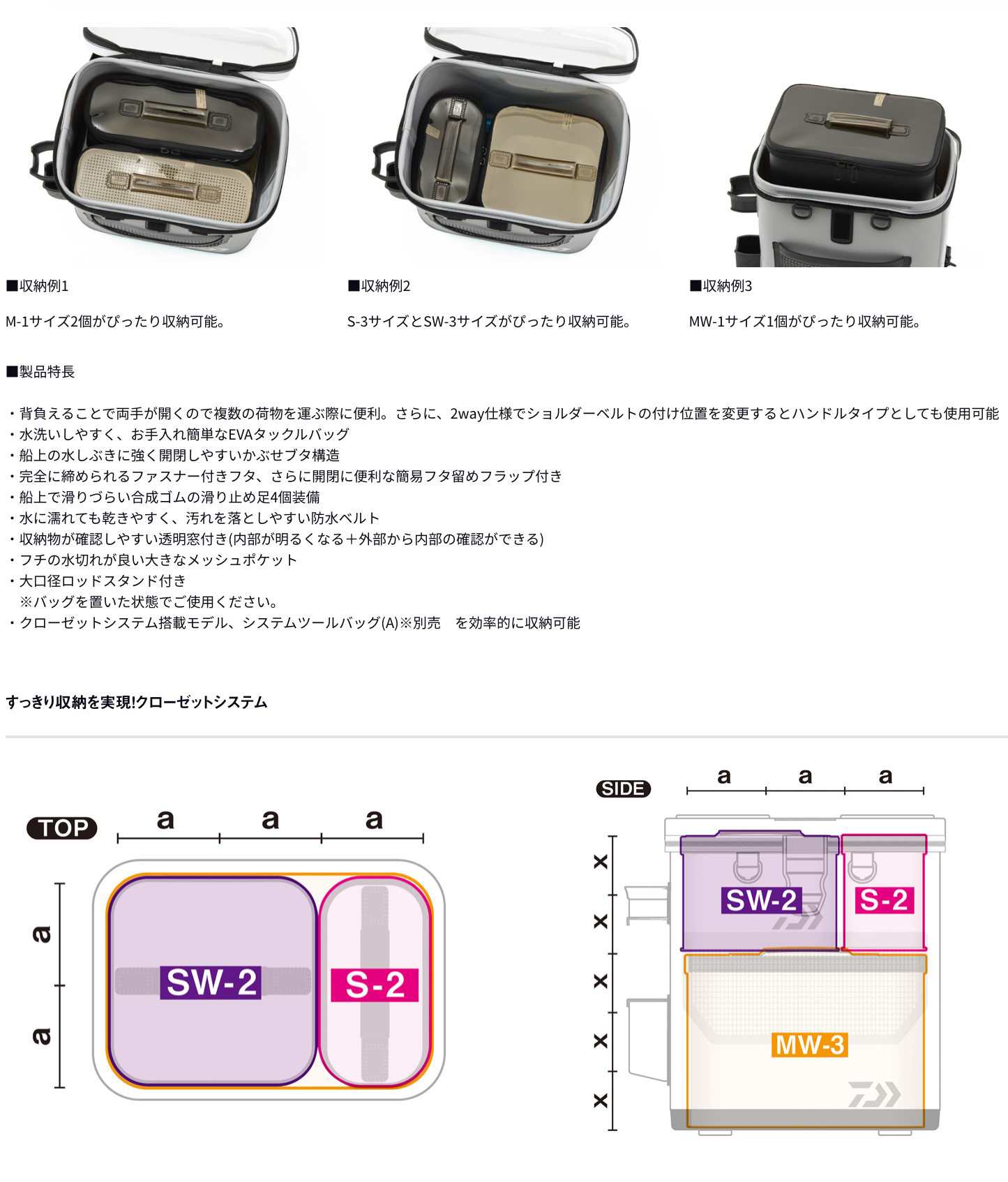 クローゼットシステム搭載モデルのため、システムツールバッグ(A)がぴったり収納可能なサイズ展開。