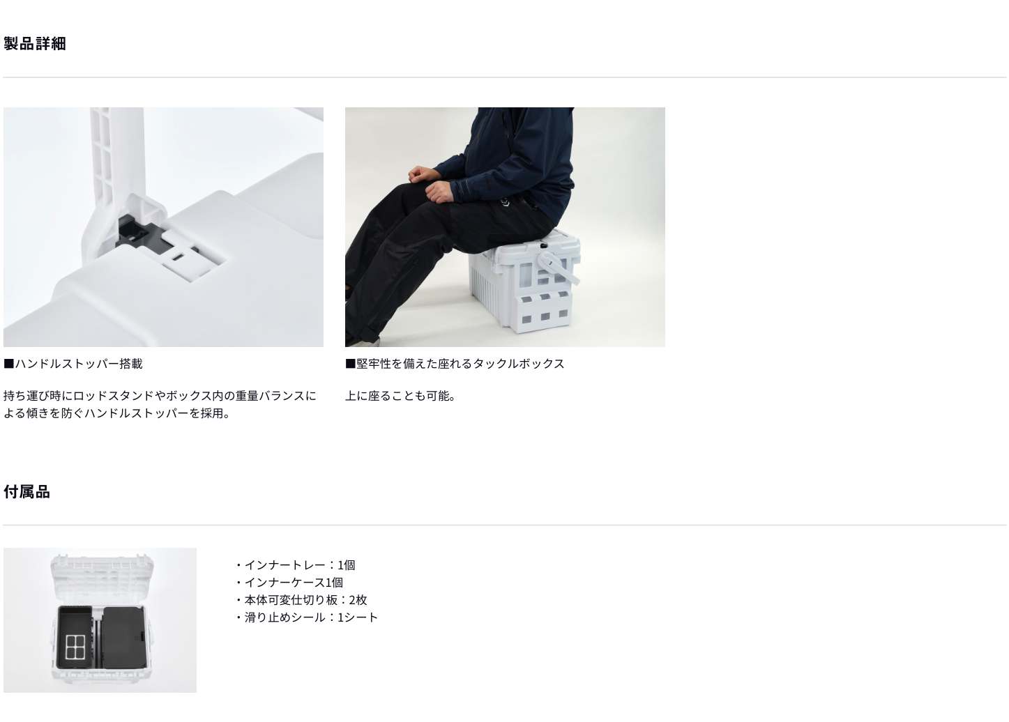 タックルボックスとしての収納性はもちろん、堅牢性を備えた座れるタックルボックス。