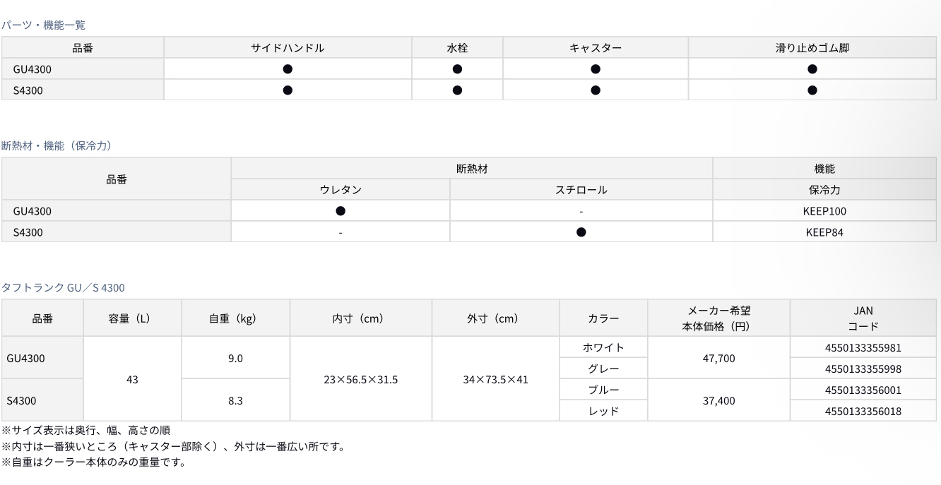 ウレタン断熱の高保冷モデルと軽量スチロールモデルをラインナップされているので、好みや用途に合わせて選ぶことができます。