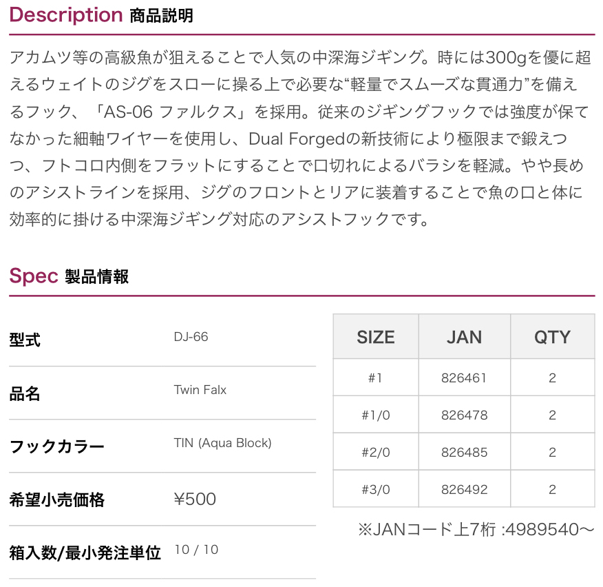 DECOY TWIN FALX ASSIST HOOK DJ-66