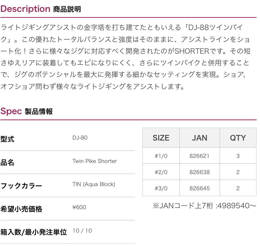 さらに様々なジグに対応。ツインパイク・ショートバージョン