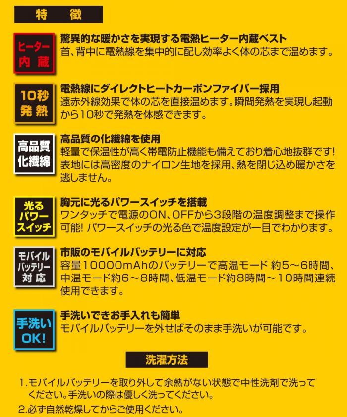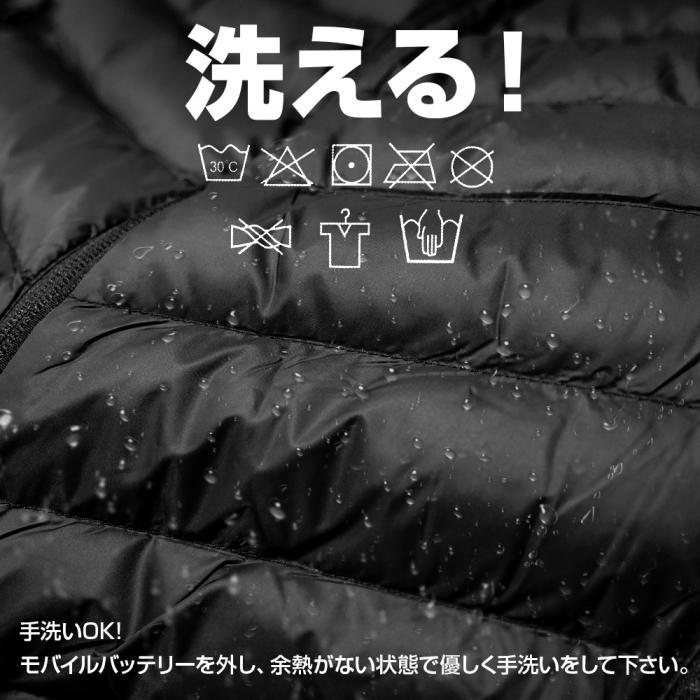 ●電熱ヒートシステムと中綿ダウンで驚異的な暖かさを実現。
