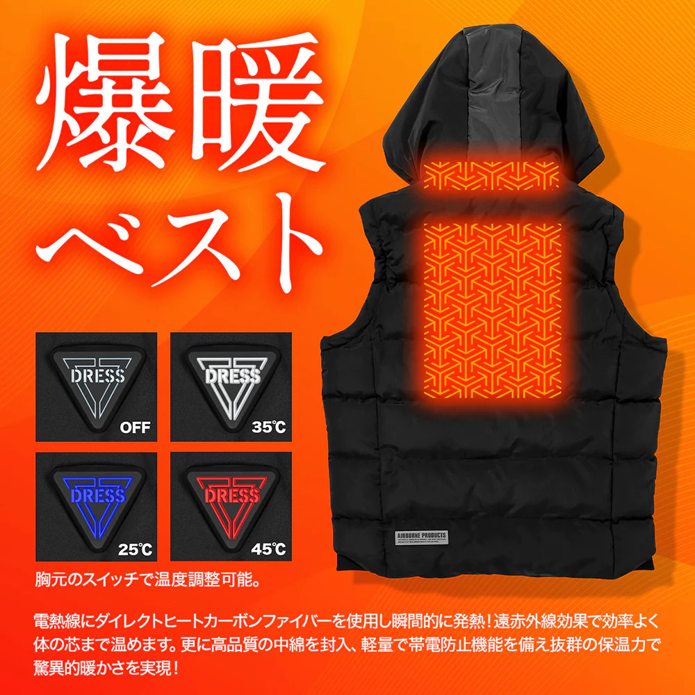 ●電熱ヒートシステムと中綿ダウンで驚異的な暖かさを実現