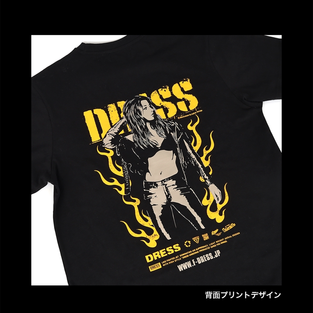 背面いっぱいにプリントされた「DRESS」と「DRESSガール」が大きなインパクトを与える一品です。