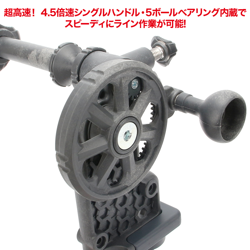 4.5倍速の超高速ギア比と5ボールベアリング内蔵、シングルハンドルでスピーディに作業が可能です。