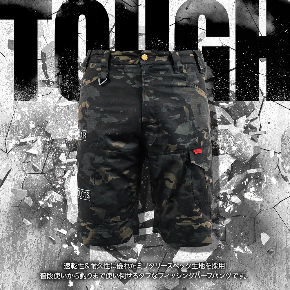 ミリタリーグレードの生地を使用したタフなフィッシングハーフパンツ